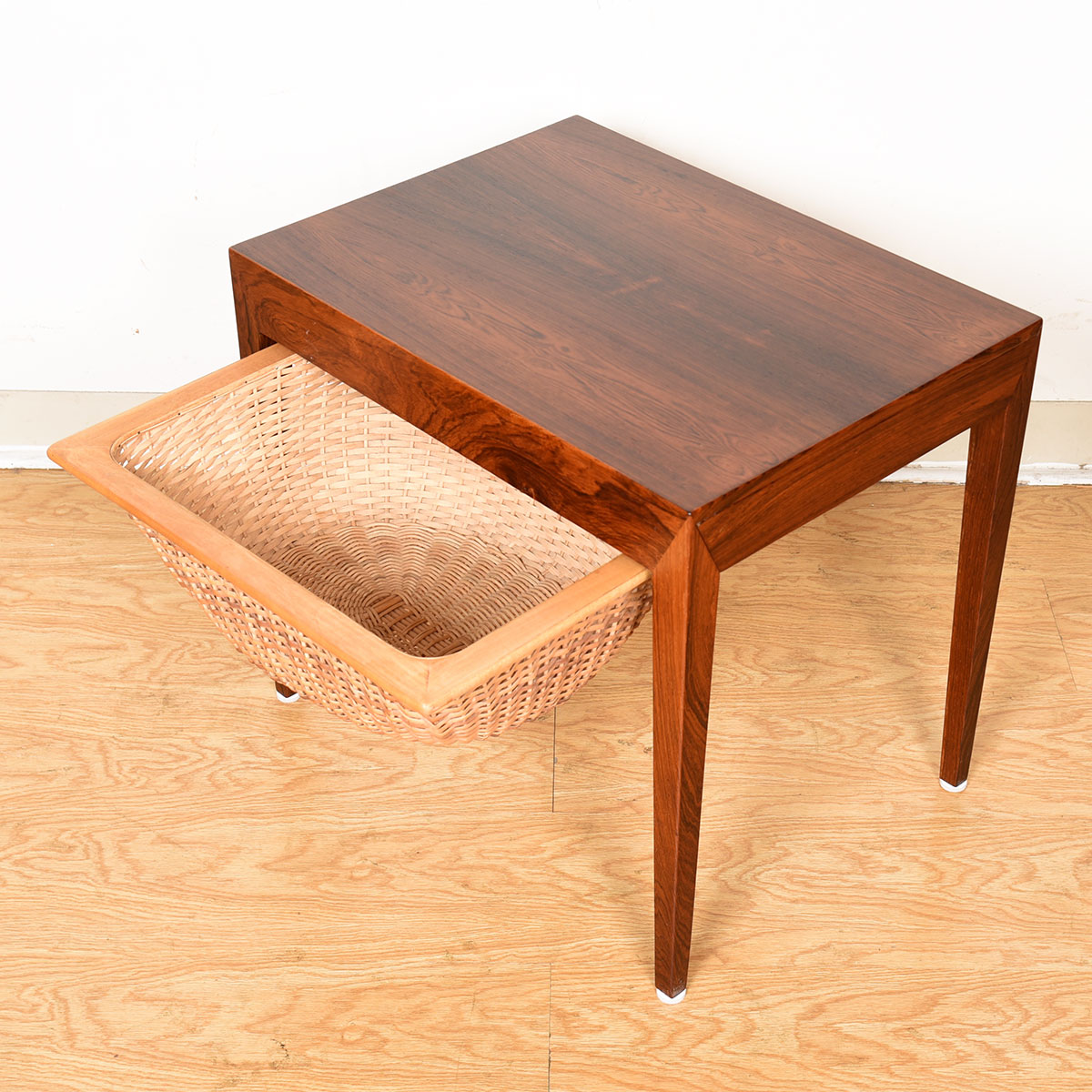 To arrange purchase or for more information about the Pair Danish Rosewood Night Stands | Sewing Basket Tables w: Hidden Side Storage Drawer please call us at 202.882.1648 or email us at info@modernmobler.com