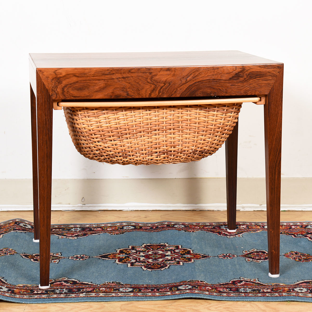 - Crafted of rosewood, each has one drawer for notions plus a rattan storage basket that pulls out to hold your project or bulky items