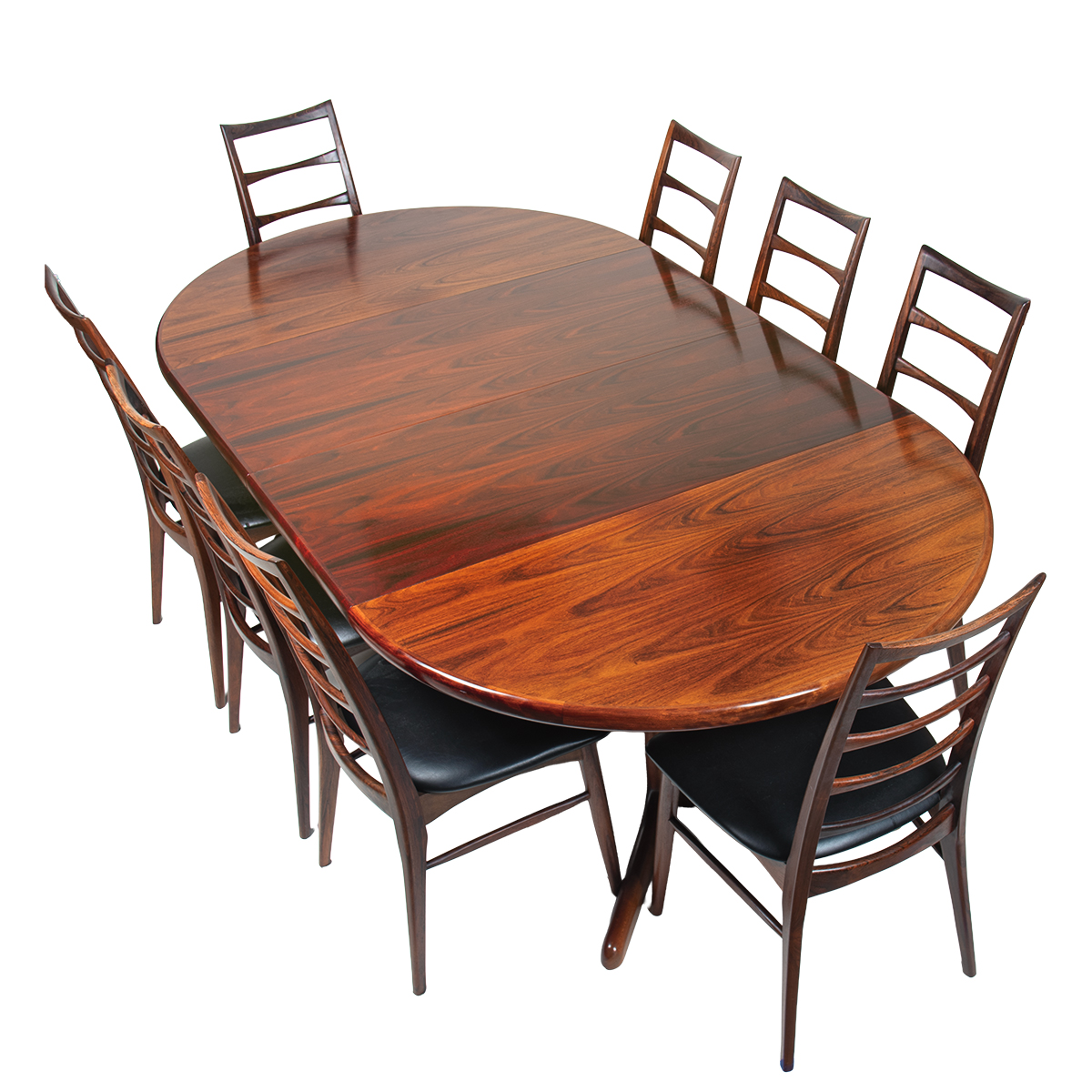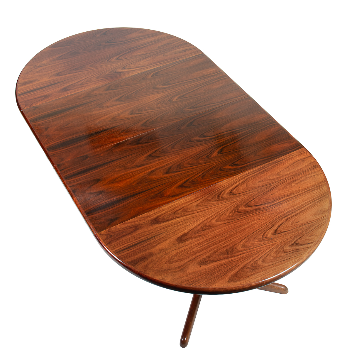 Danish Rosewood Round to Oval Expanding Dining Table w. 2 Leaves