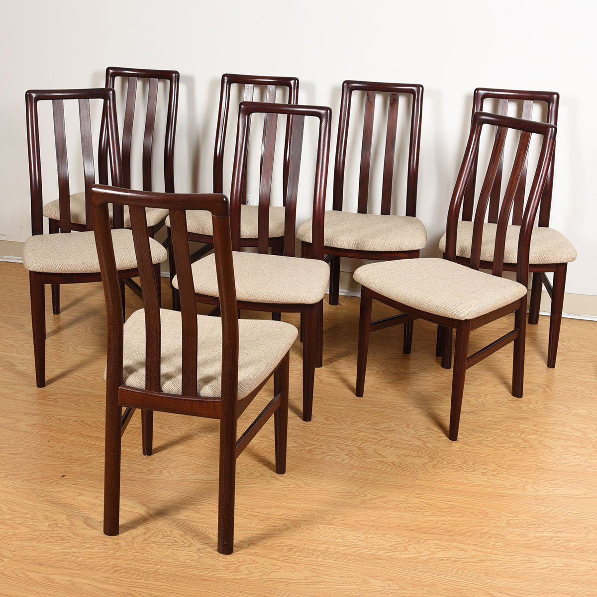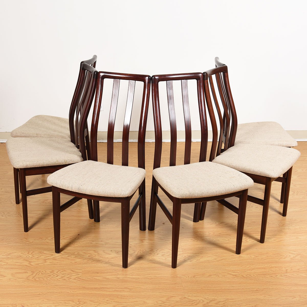 » » » Danish Rosewood Set of 8 Tall Slat Back Dining Chairs