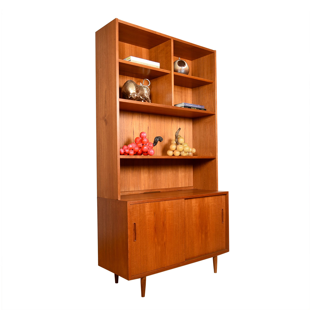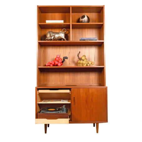 Danish Teak 2-Pc 42″ Storage | Media | Display Cabinet w: Lower Pull-Out (Turntable) Shelf
