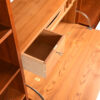 Visually broken into three sections, the left section is about one-third the width of the other two and has shelving all the way to the floor. The two right columns have longer shelving & three closed storage ‘boxes’ — these ‘boxes’ (along with all the shelving) are adjustable & modular so they can be placed throughout the unit in different configurations, either for different functionality, or even just aesthetic reasons.