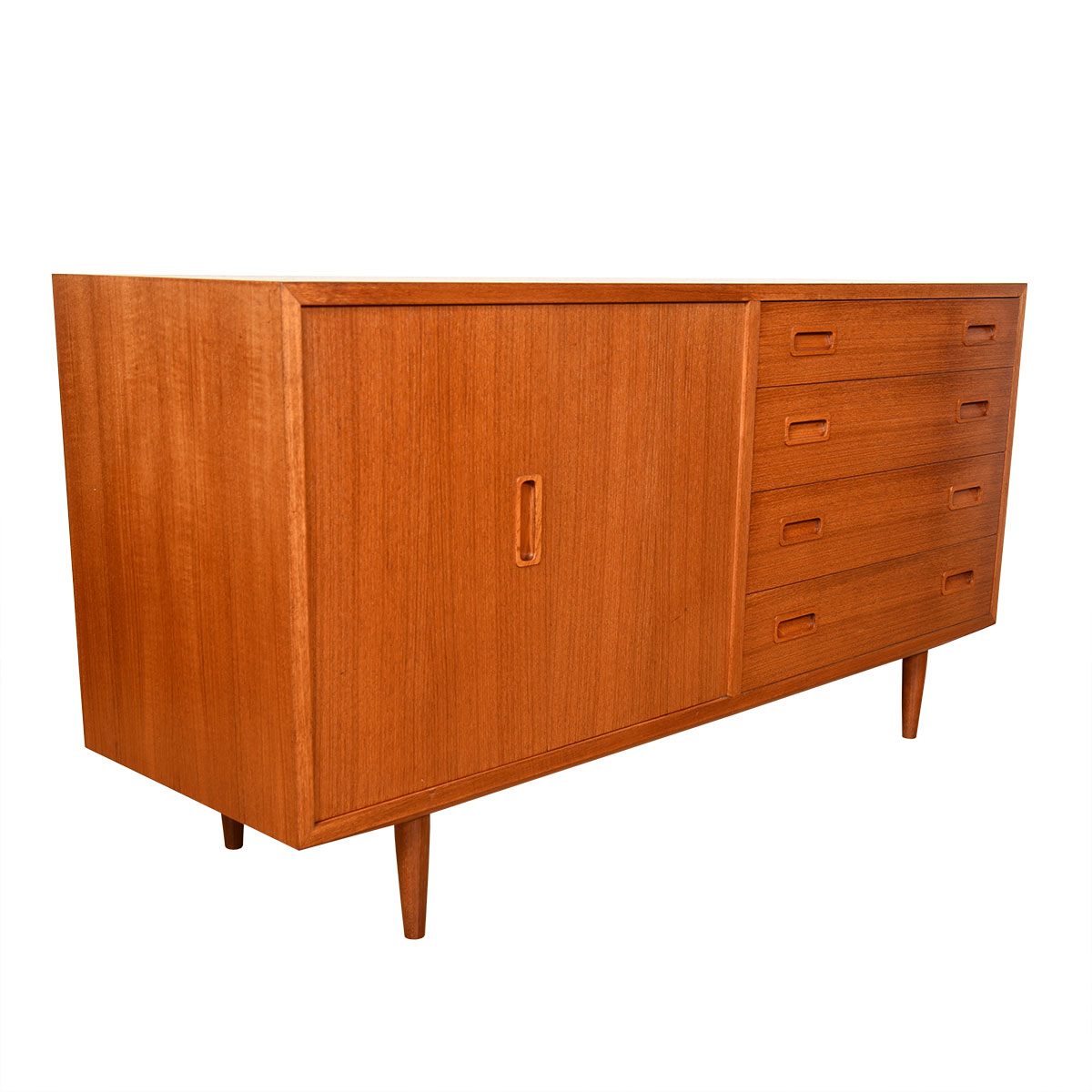 Use this beautiful and functional Danish Modern teak cabinet in your family room as a media cabinet, dining room as a sideboard, or in your office.