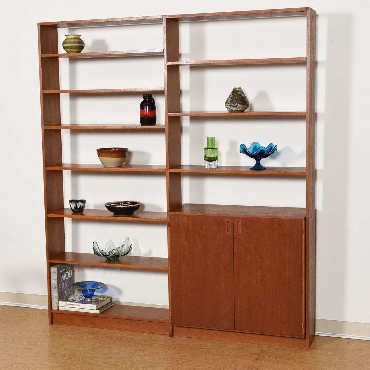 Danish Teak Bookcase Wall Unit w/ Adjustable Storage Cabinet