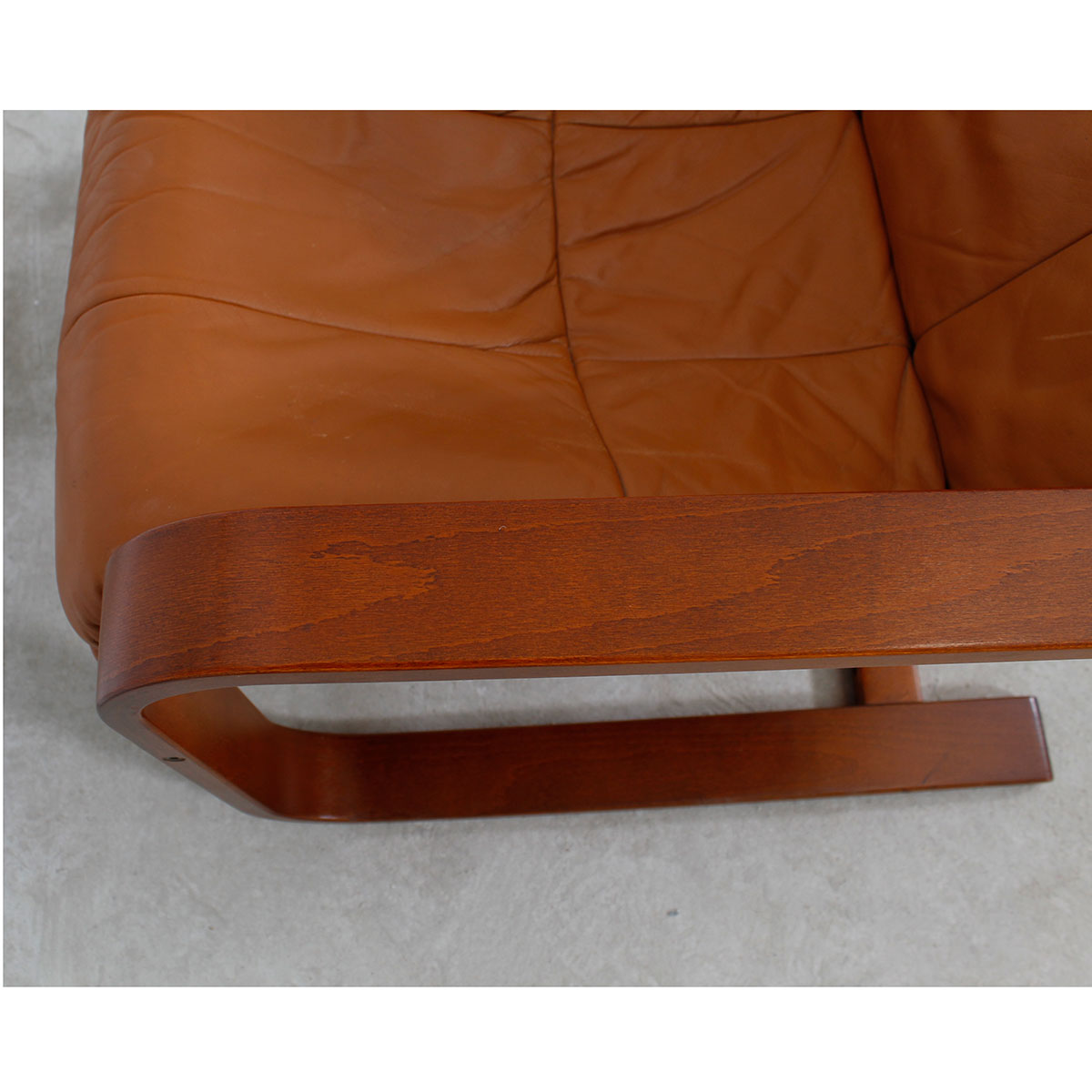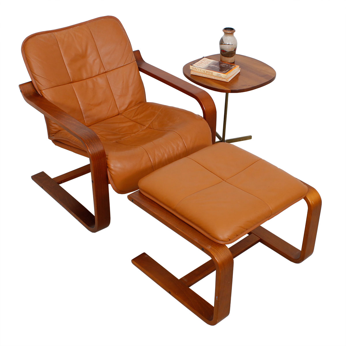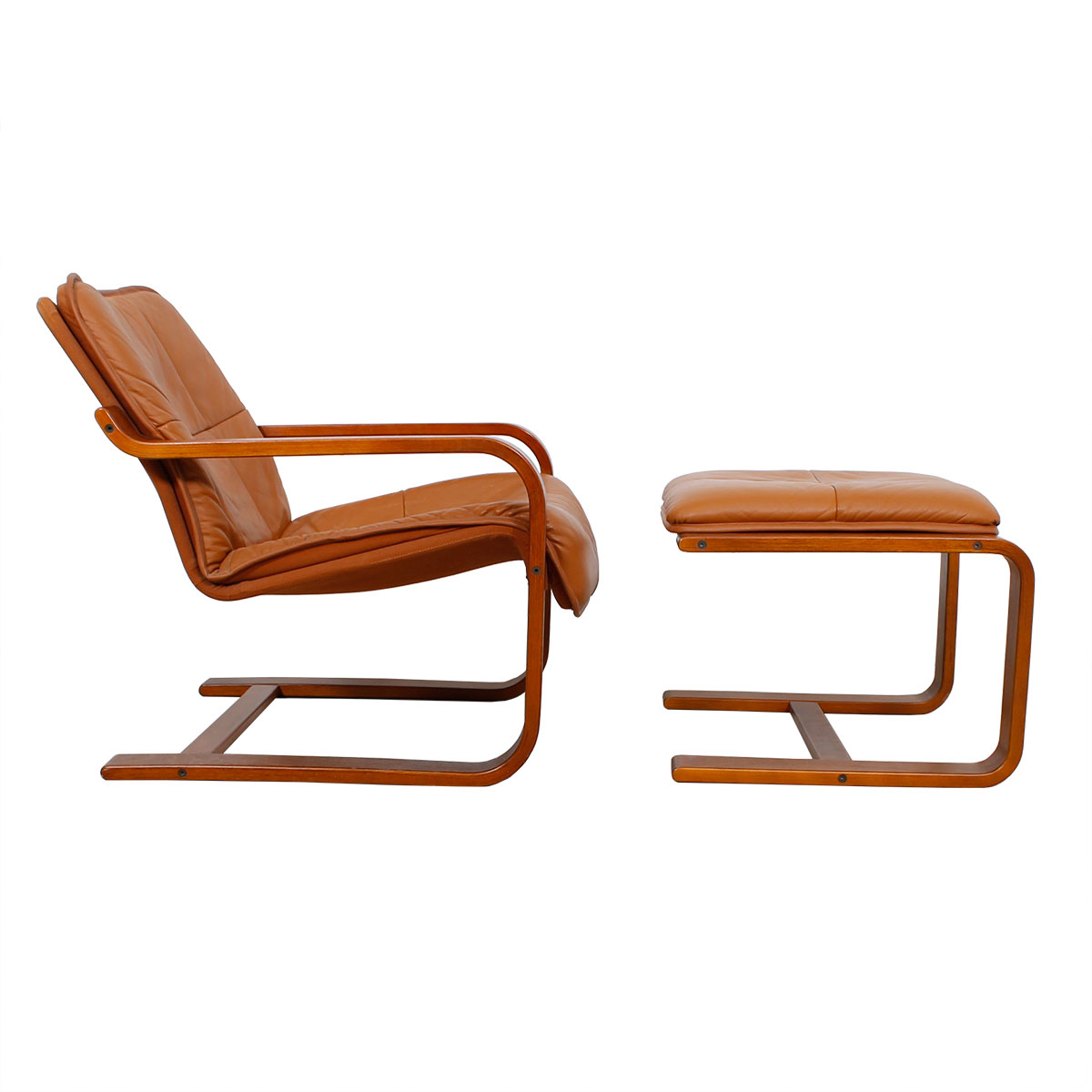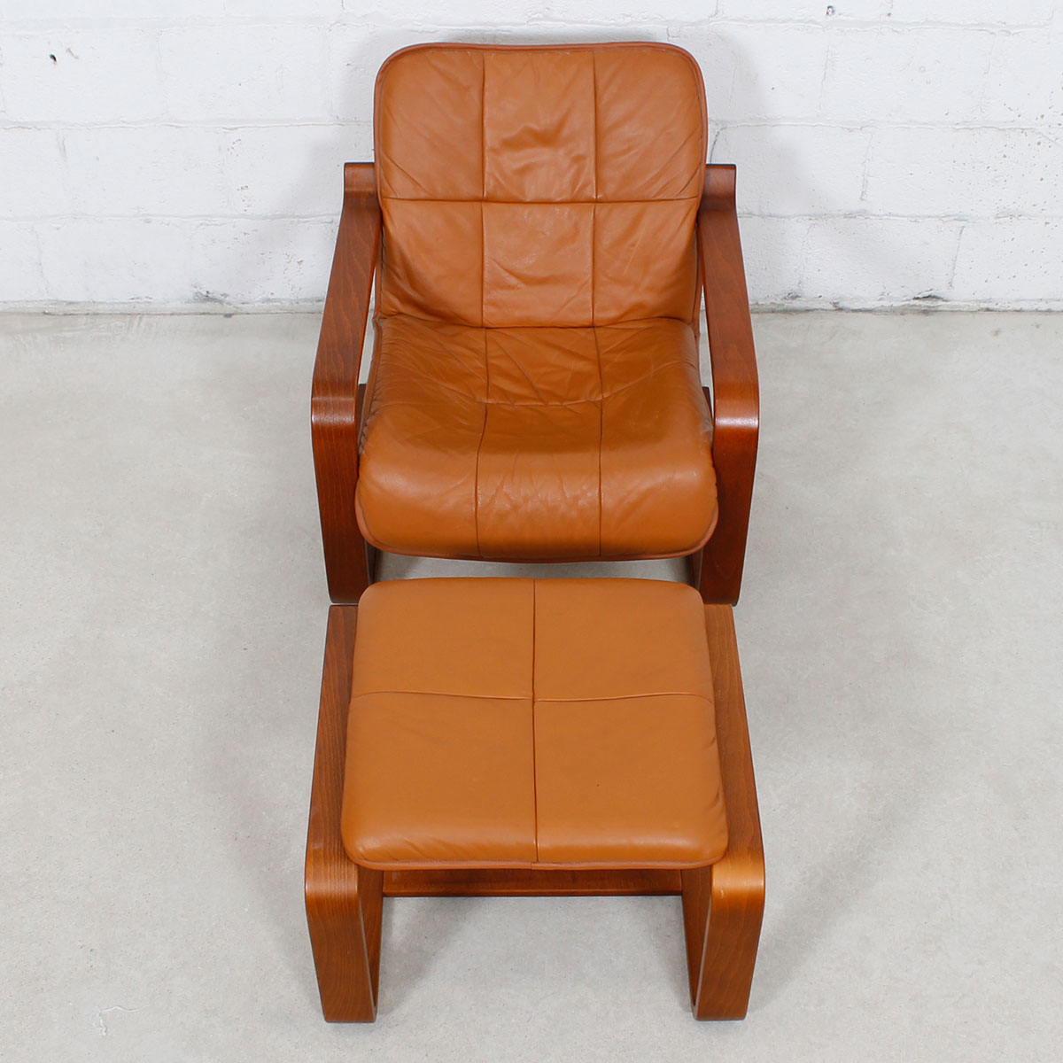 Finnish Brown Leather Lounge Chair & Matching Ottoman