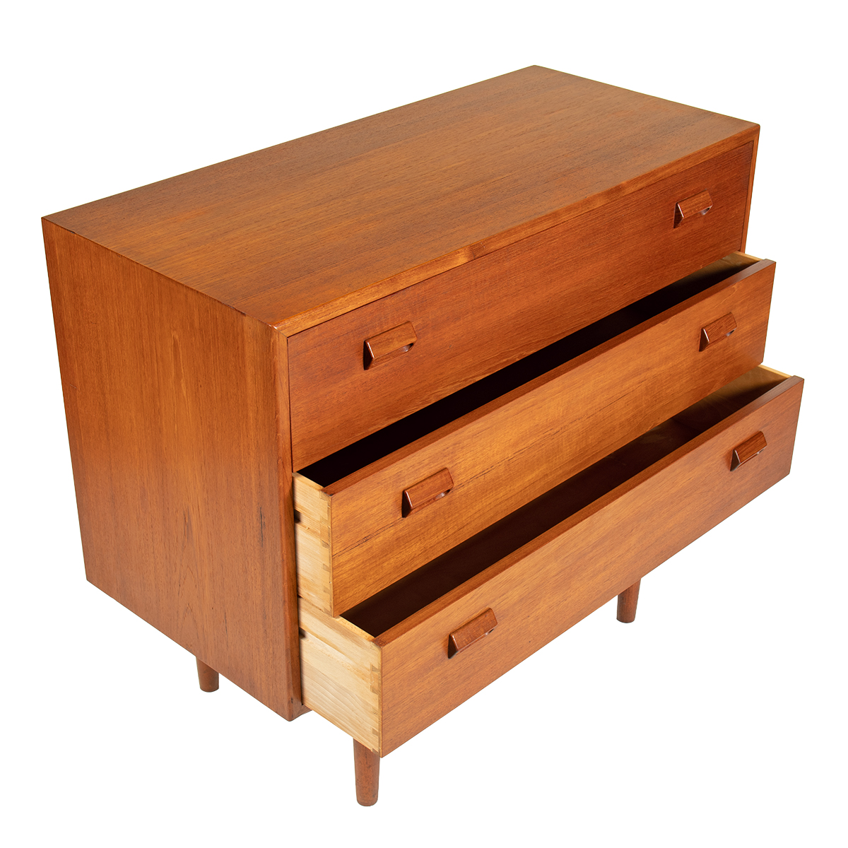 - Each drawer has the hooded pulls that are the signature of Borge Mogensen