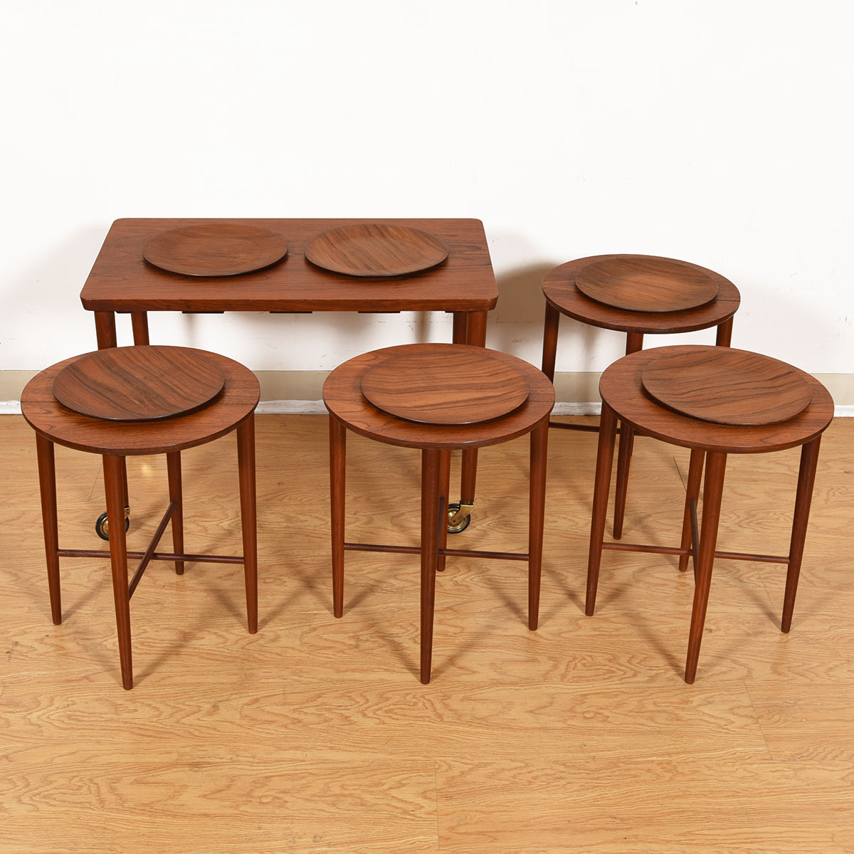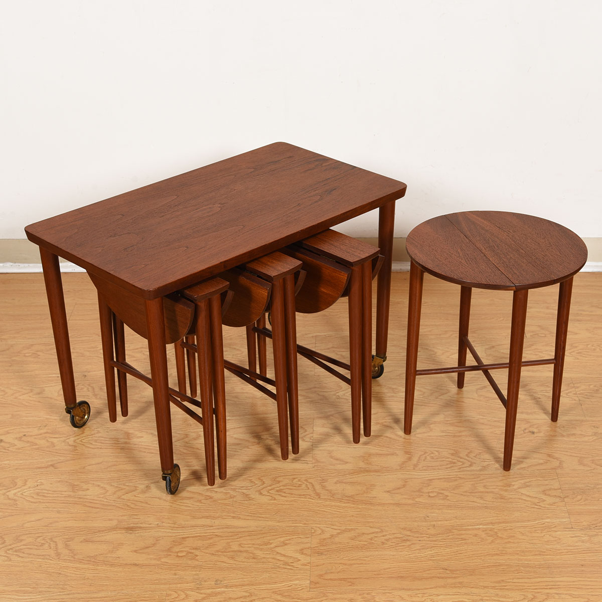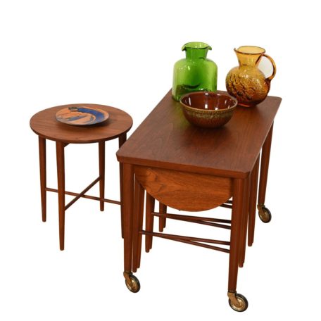 Danish Teak Rolling Cart w/ Nesting Drop-Leaf Accent Tables