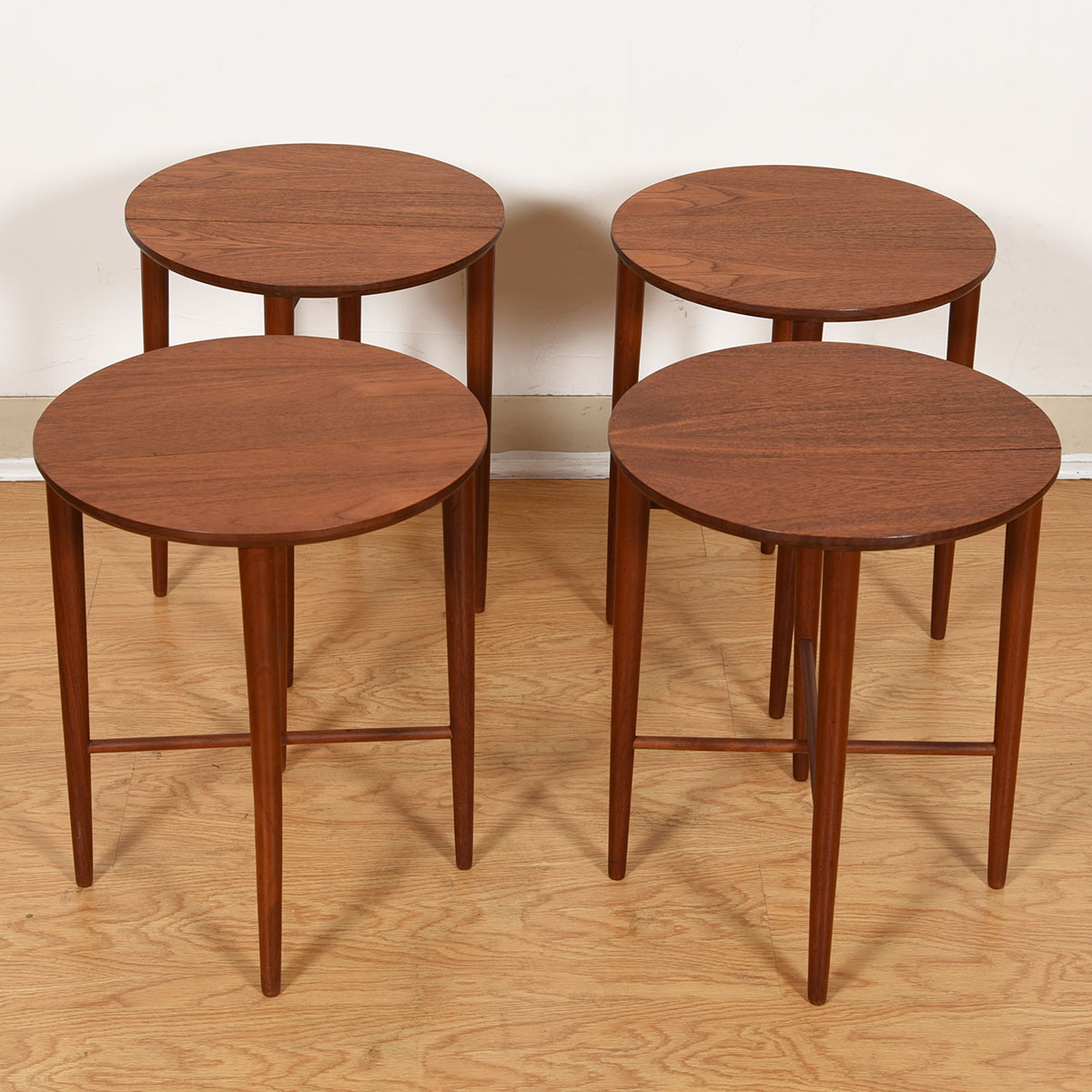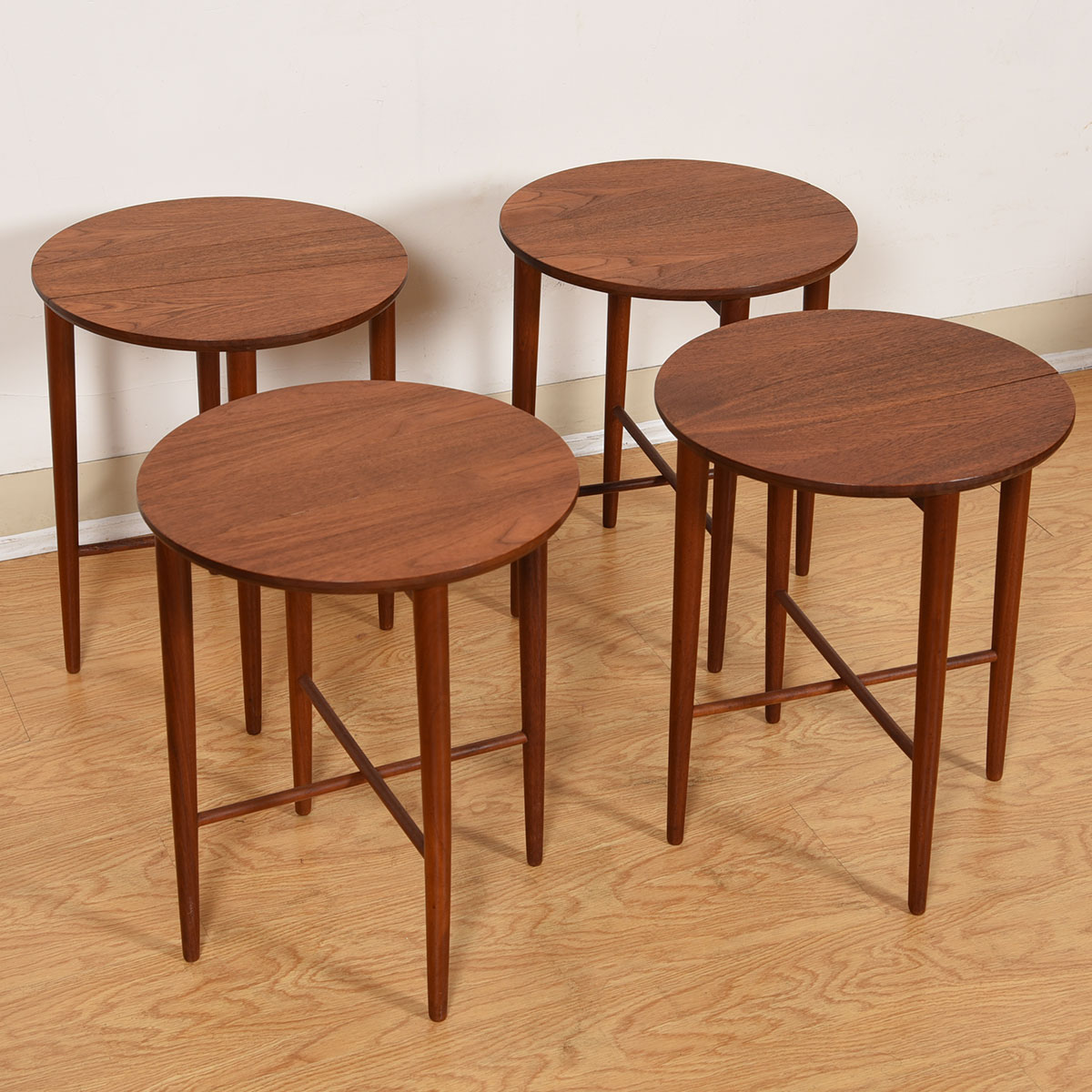 Bring the small tables out when it’s family night around the television then neatly tuck them away when you’re done. Or, scatter the four extra tables around your home wherever you need them. The teak has aged to a deep, rich patina and the simple design will fit in with almost any decor.