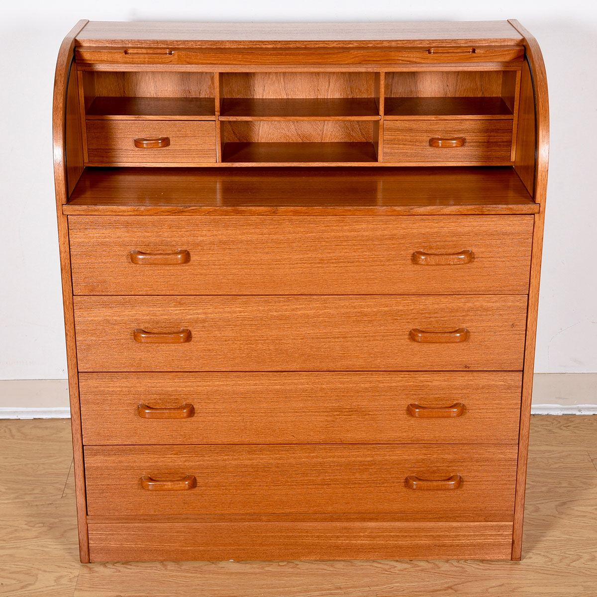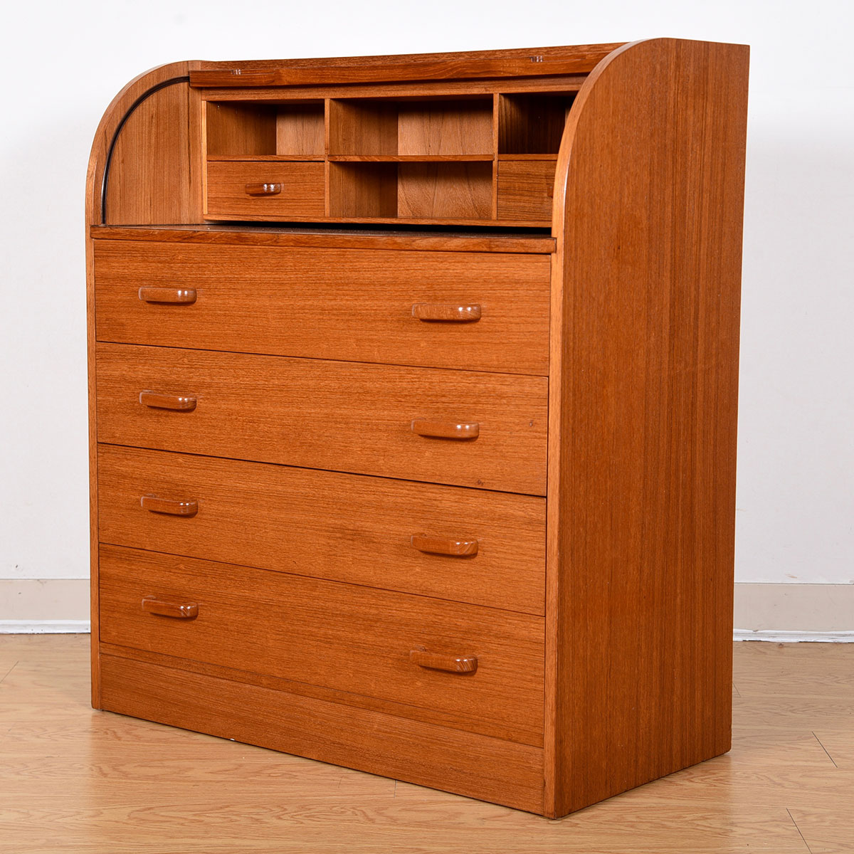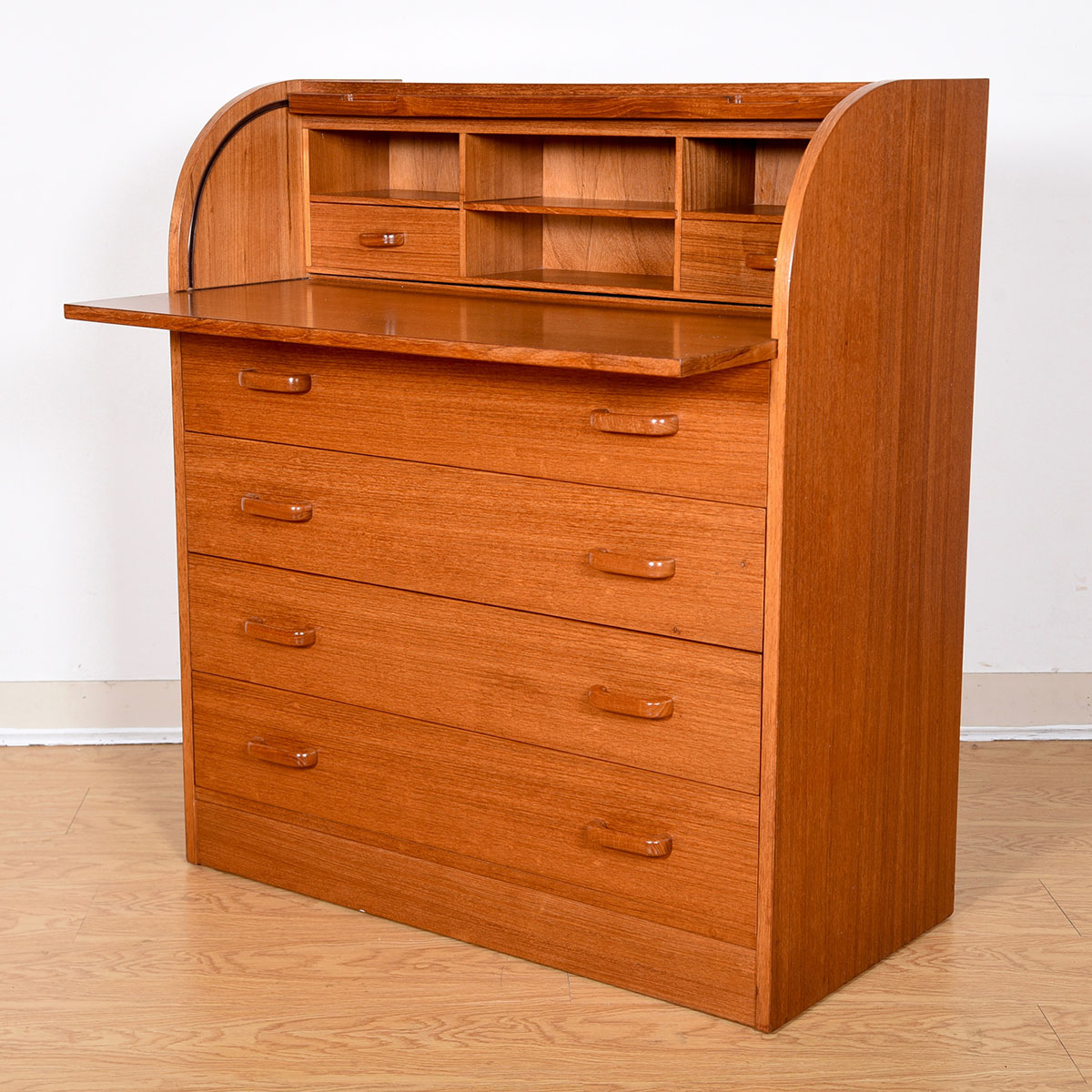 Danish Modern Rolltop Secretary Desk / Dresser in Teak