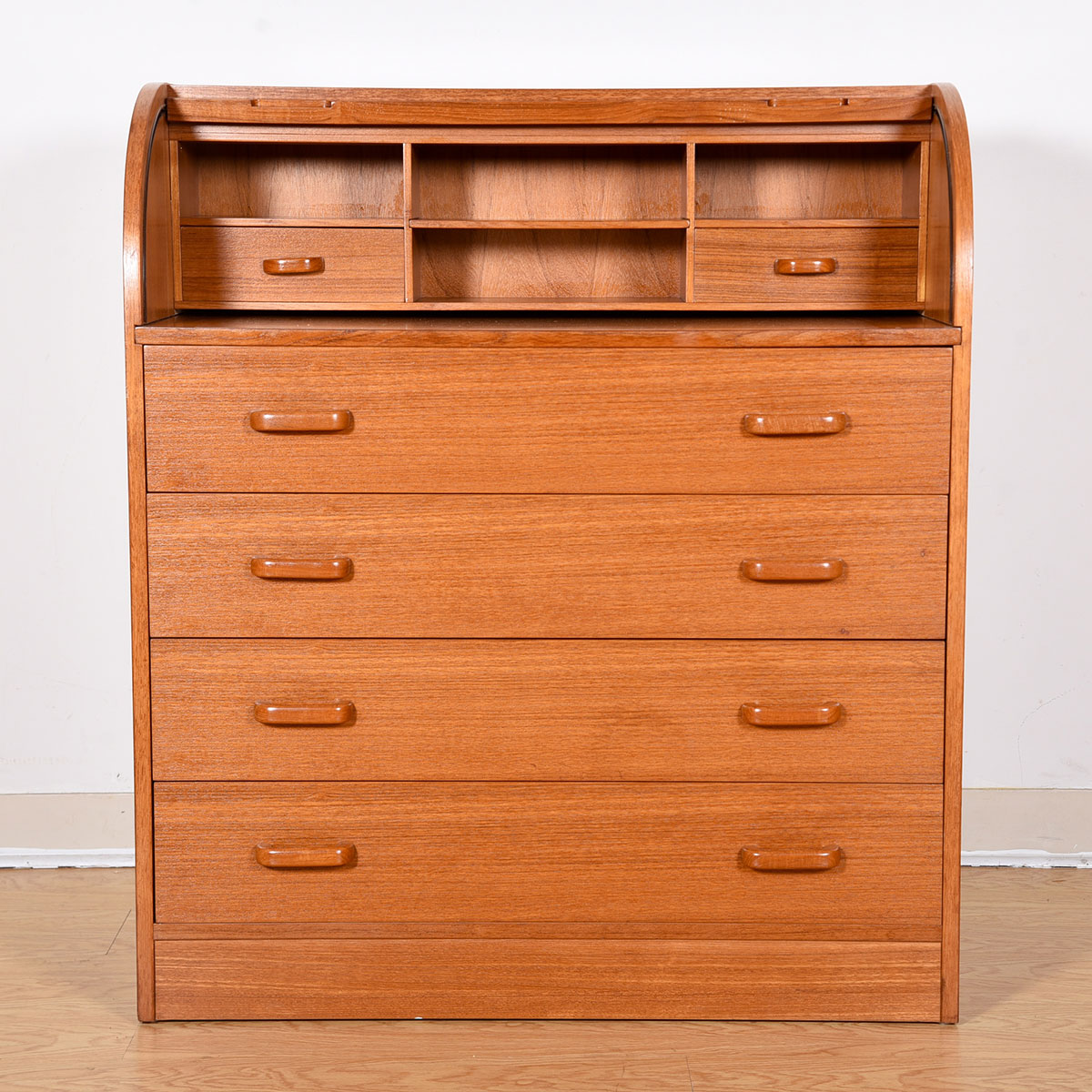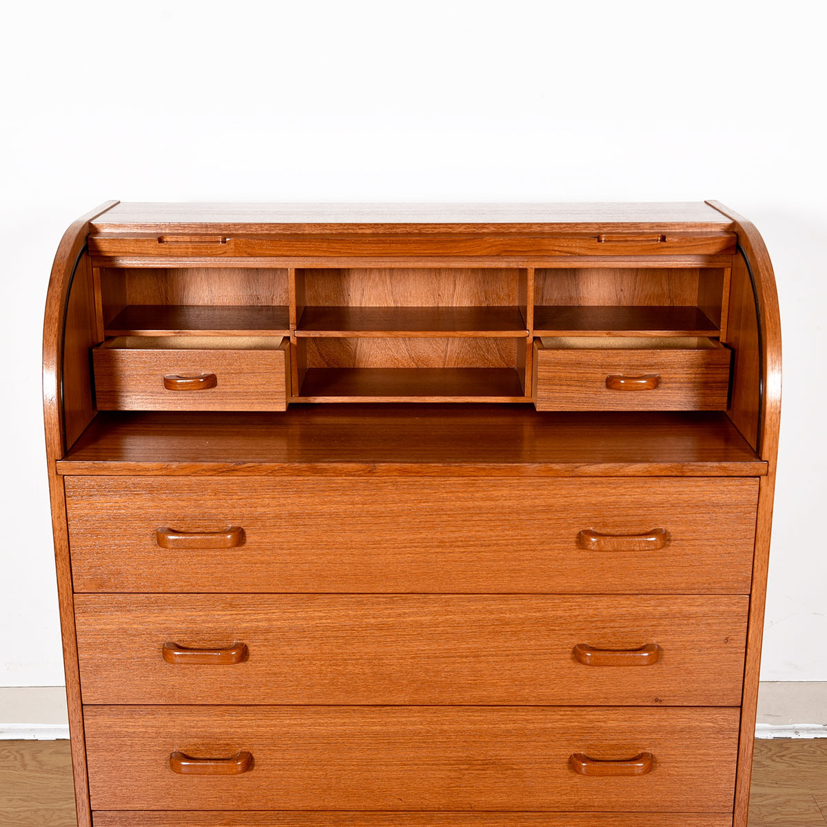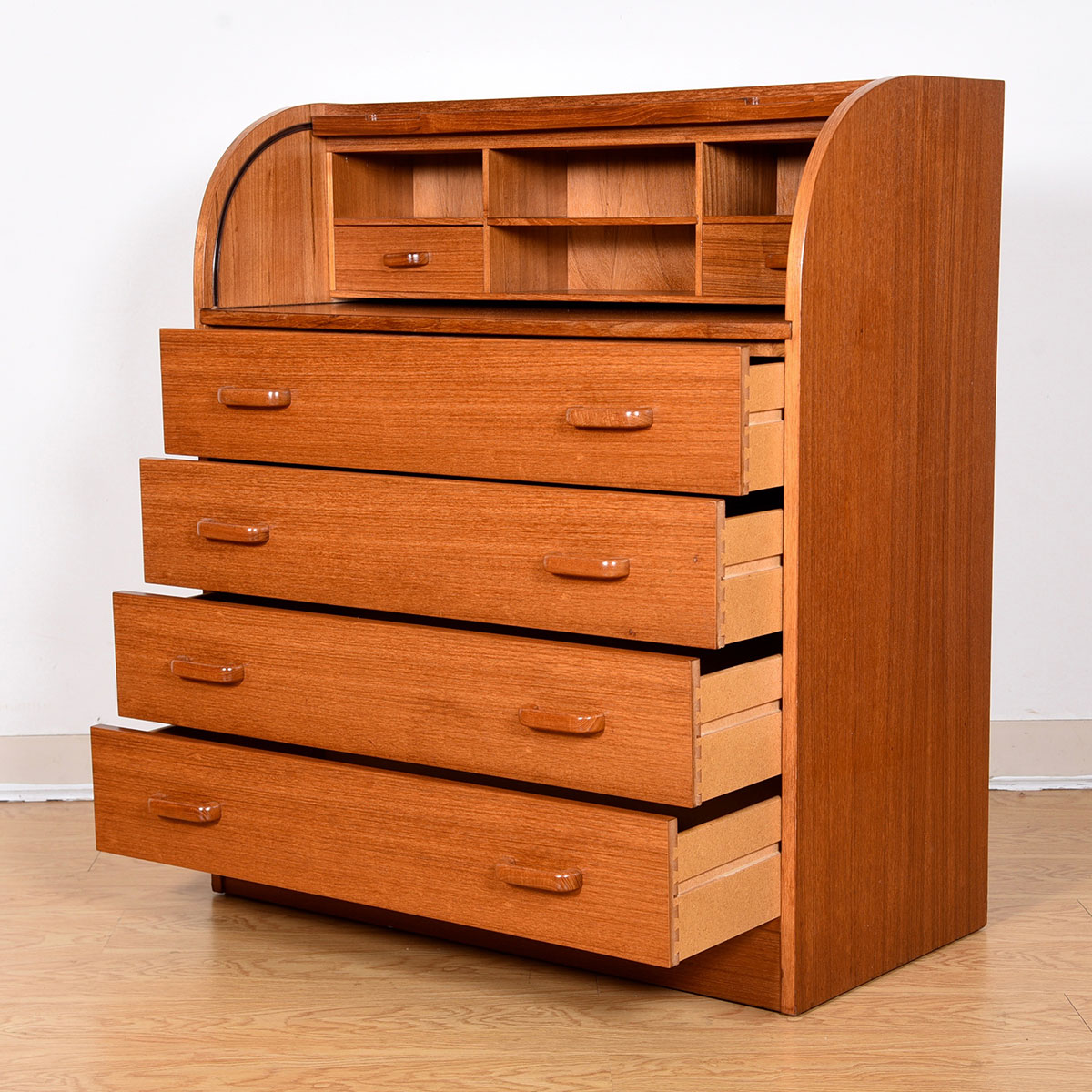 Danish Modern Rolltop Secretary Desk / Dresser in Teak