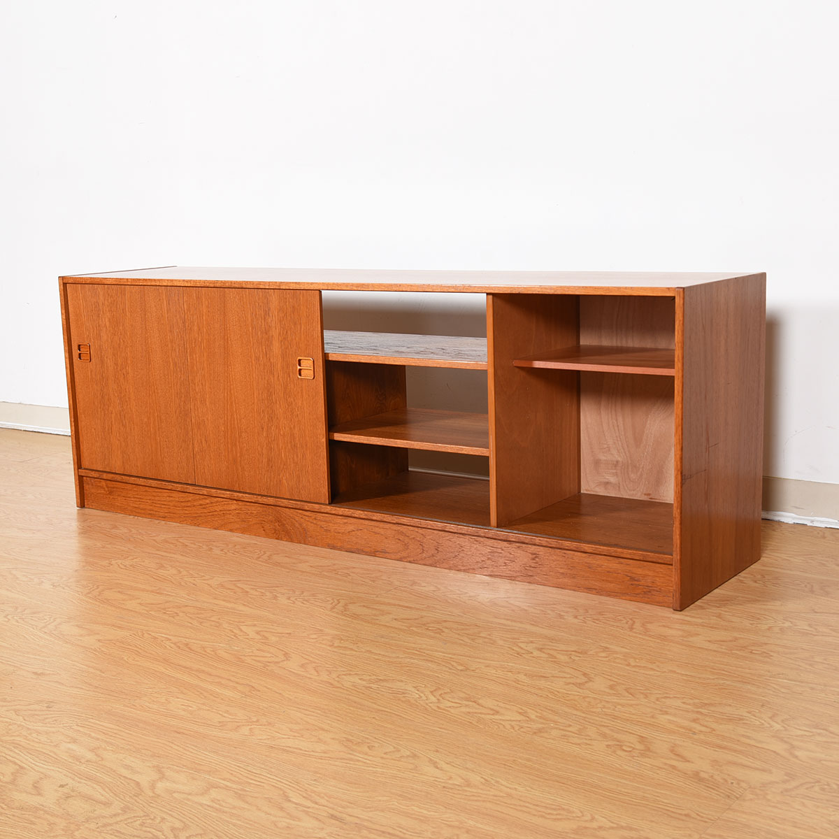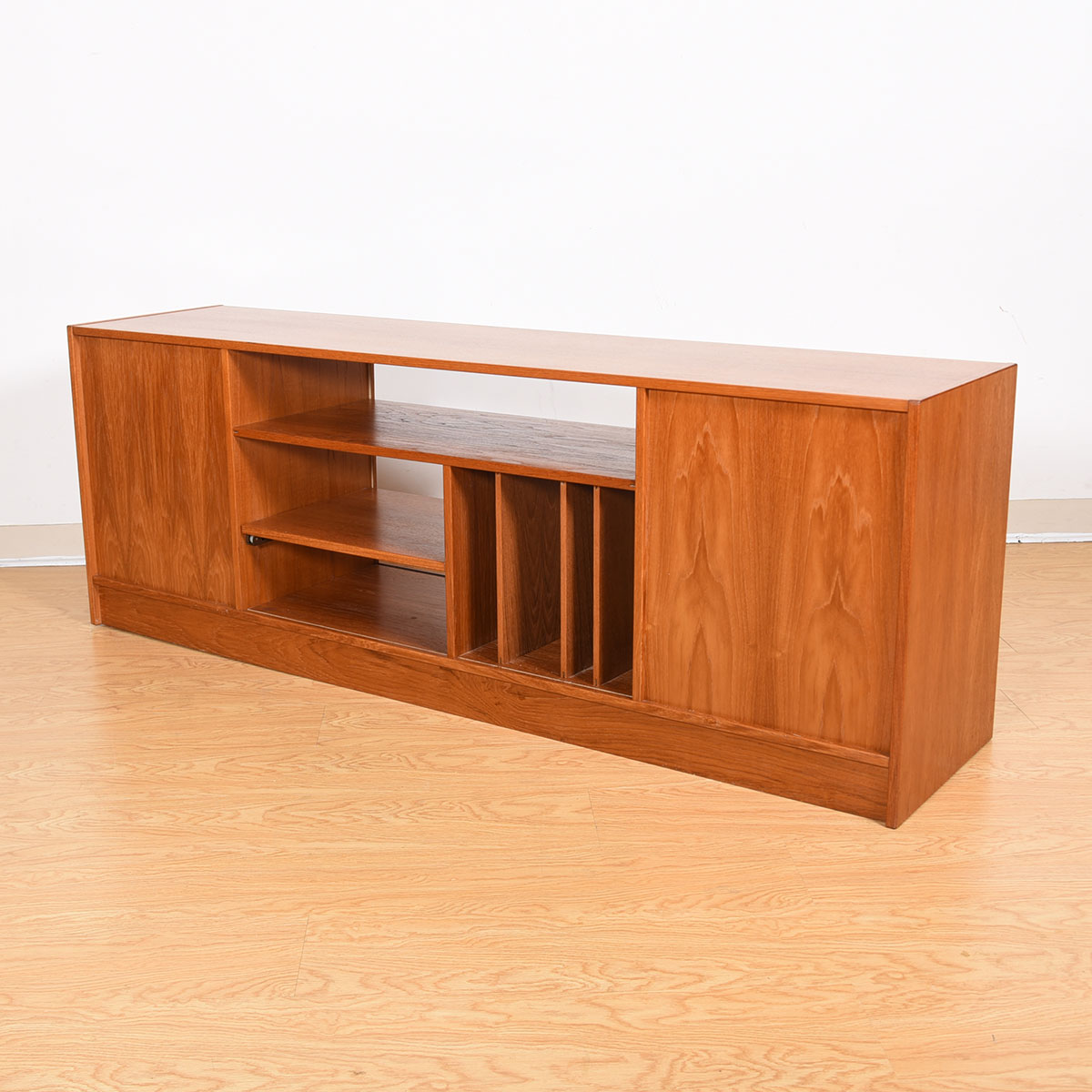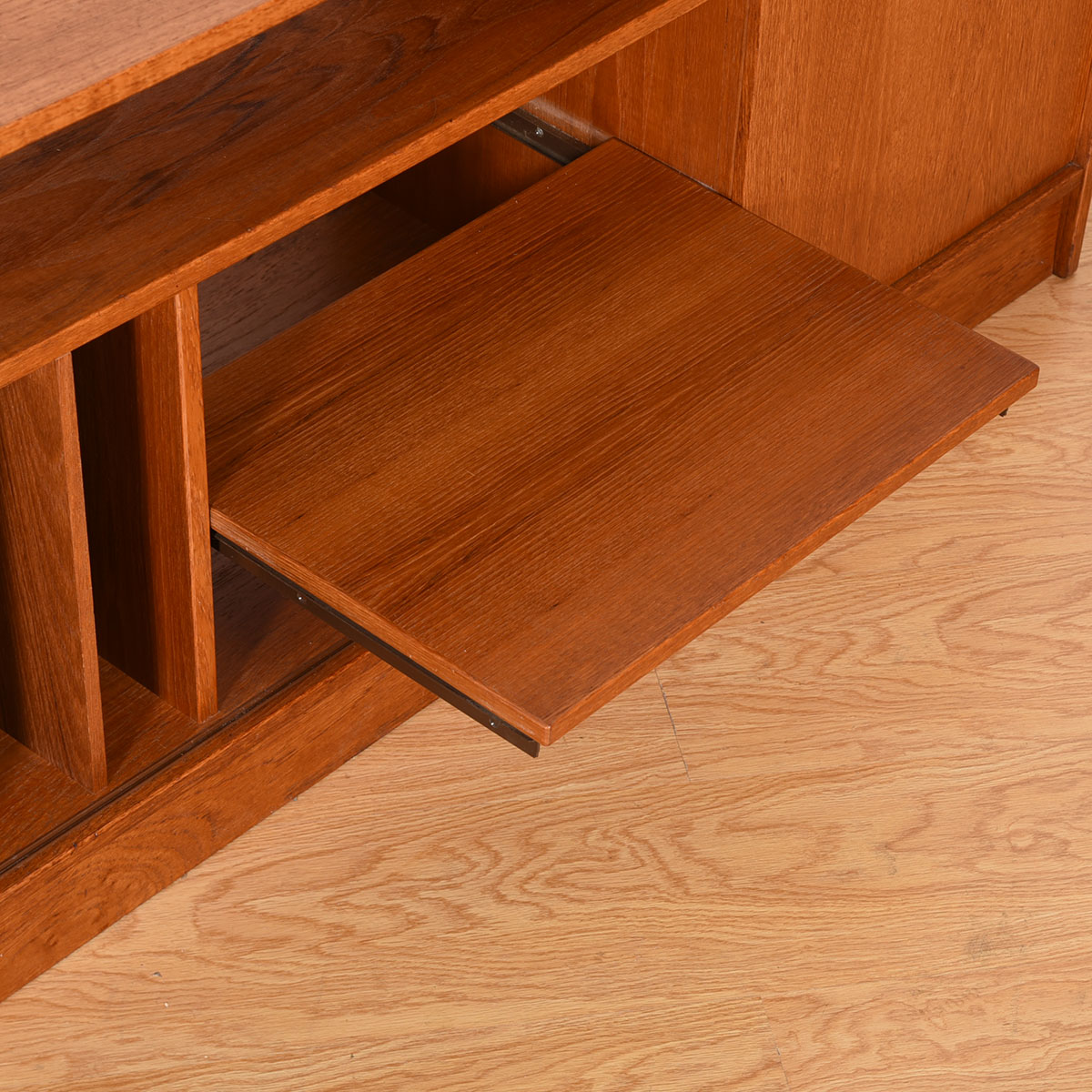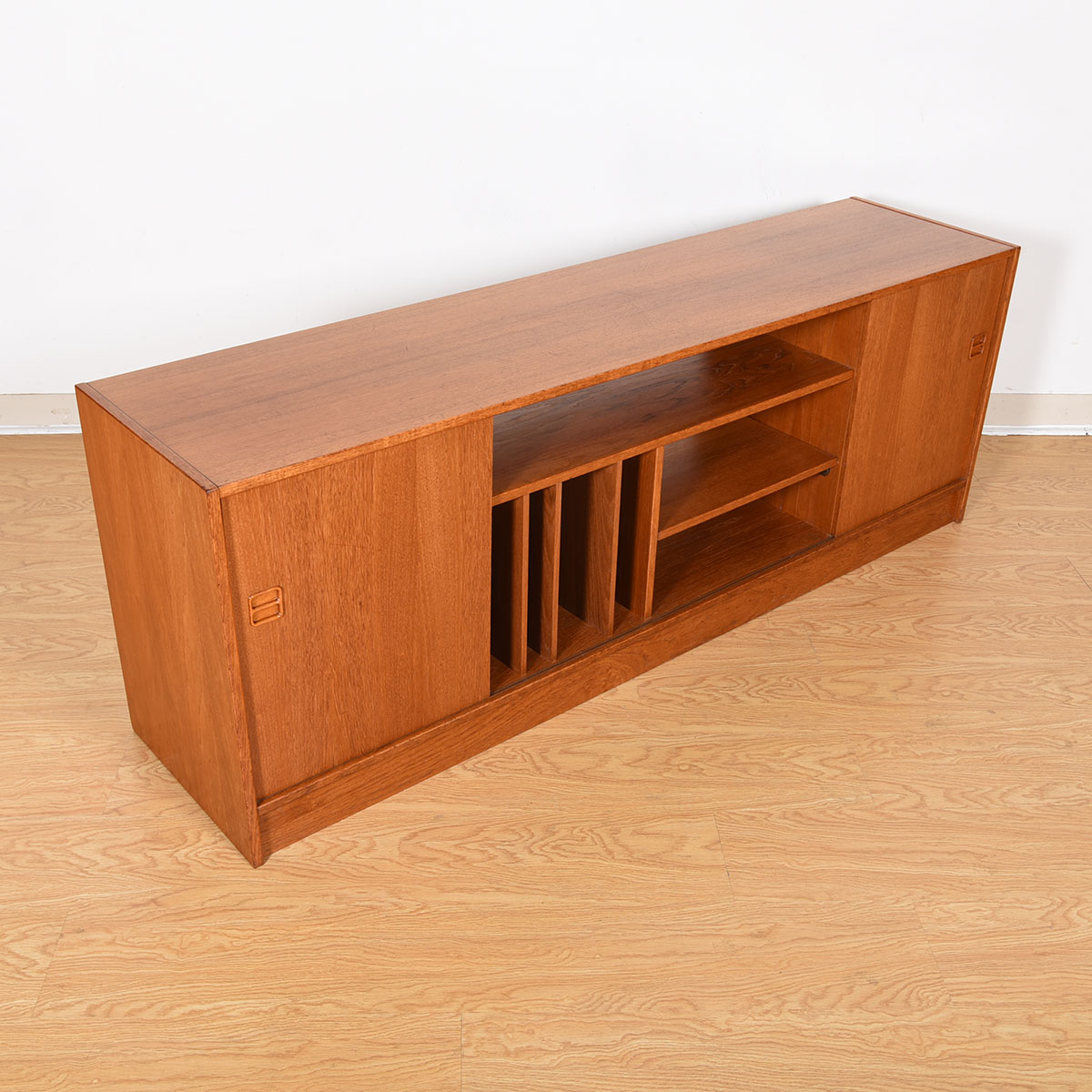 Danish Teak Room Divider / Vinyl Storage – Media Cabinet with Sliding Doors