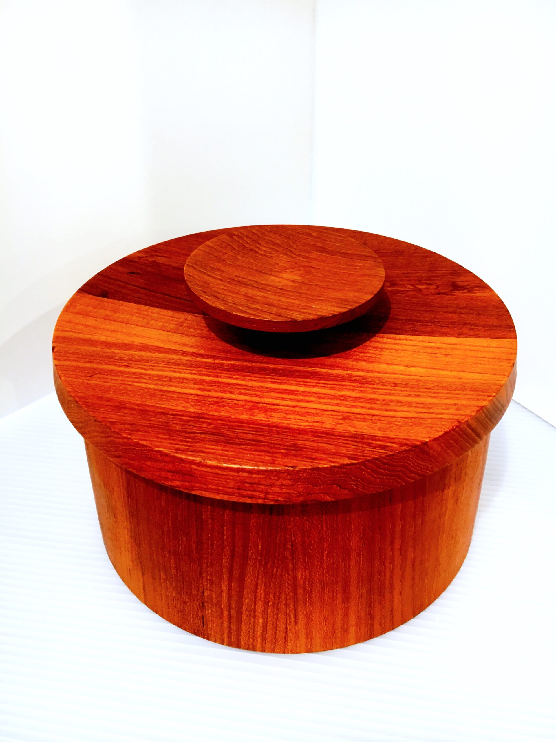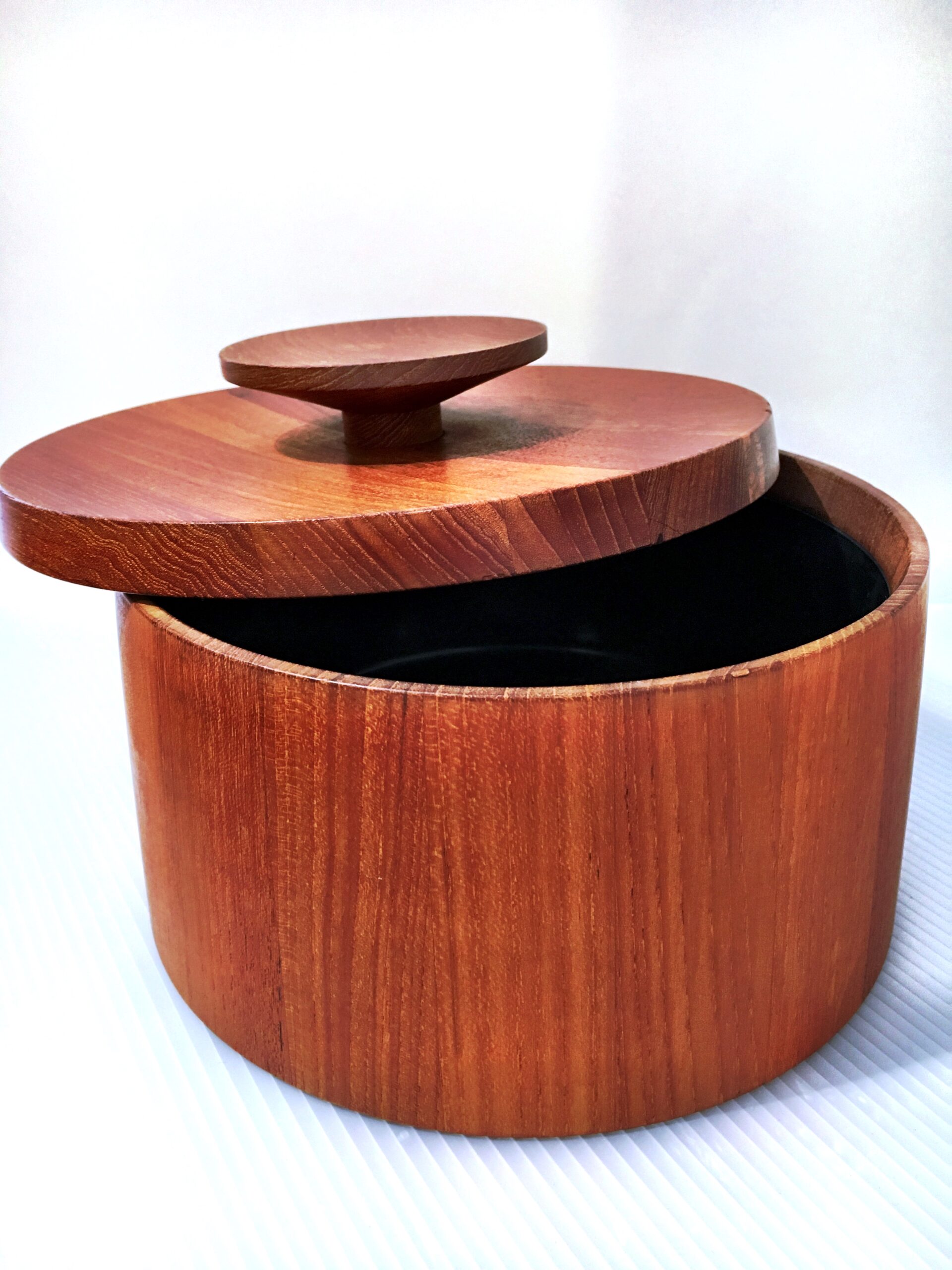 Older Dansk Teak Ice Bucket with Raised Circular Handle