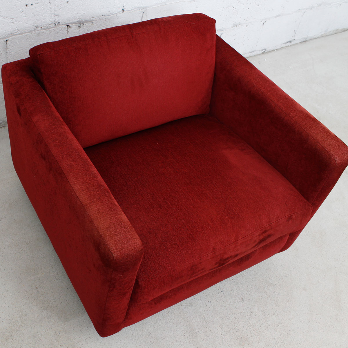 To arrange purchase or for more information about the Deep Red Chenille Lounge Chair please call us at 202.882.1648 or email us at info@modernmobler.com