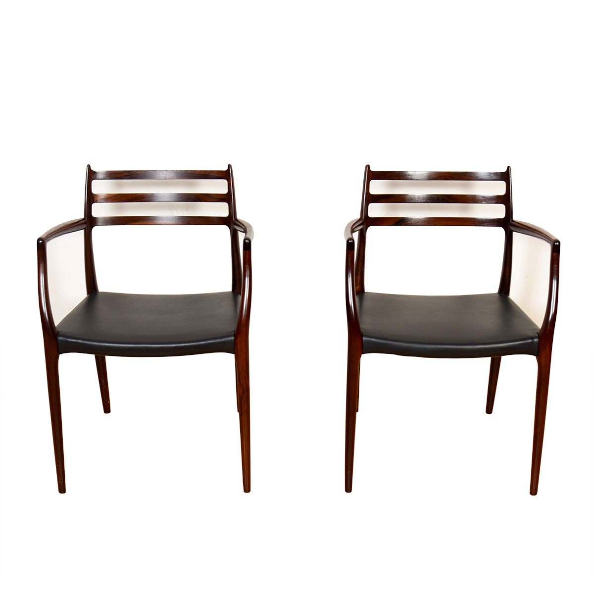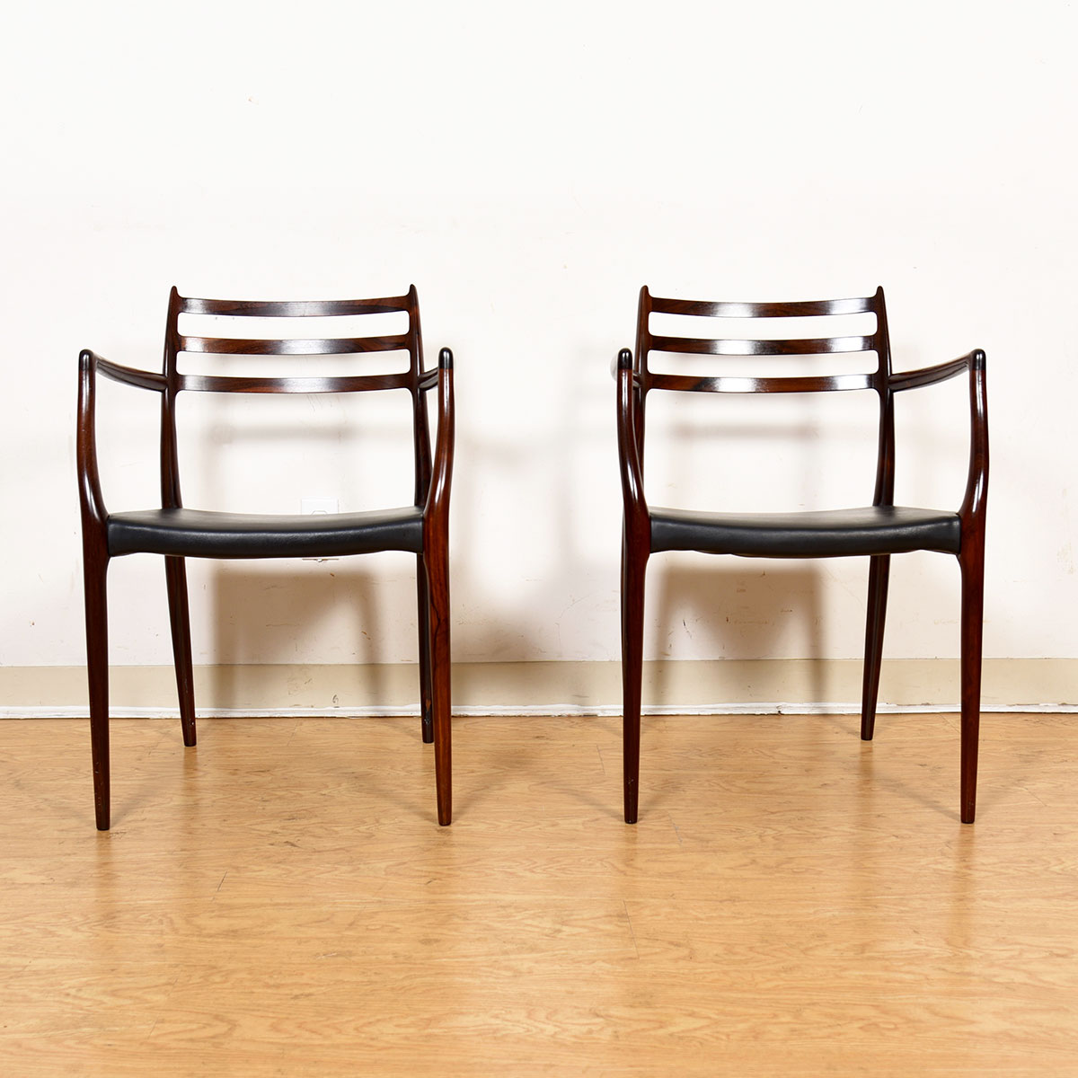 Delicious! Brazilian Rosewood Pair of Moller Danish Horn Arm-Chairs #62