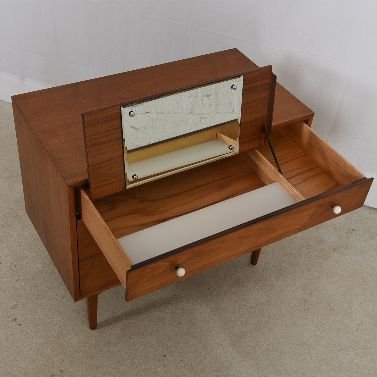 To arrange purchase or for more information about the Drexel Declaration Walnut 3 Drawer Chest w/ ‘Vanity Drawer’ please call us at 202.882.1648 or email us at info@modernmobler.com