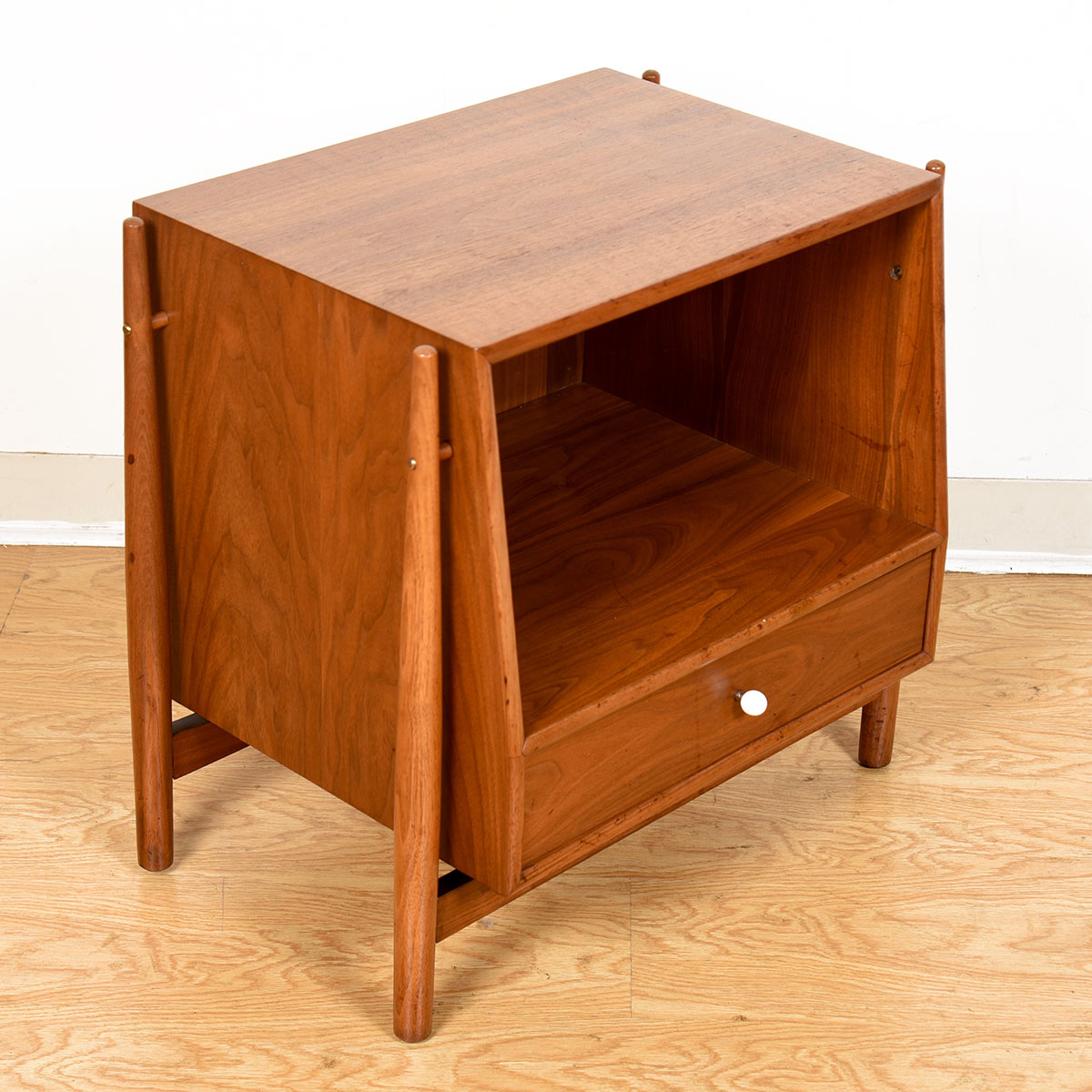 Drexel Declaration Walnut Nightstand | End Table by Stewart MacDougall & Kipp Stewart