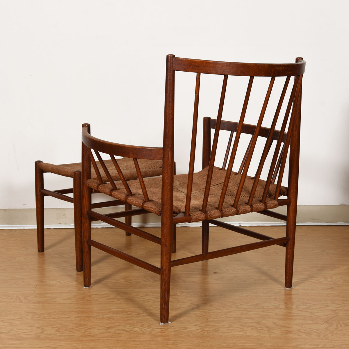 Early FDB Danish Modern Spindle + Paper Cord J82 Lounge Chair w/ Ottoman
