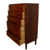 Over the course of its fifty or so years, the teak on this early Danish tall dresser has deepened to a dark, rich, desirable patina. And due to its older vintage it is well constructed ensuring it will hold up to use for another fifty years.