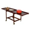 Luscious dark teak forms the frame of this beautiful expanding bar cart with a removable tray for ultra functionality.