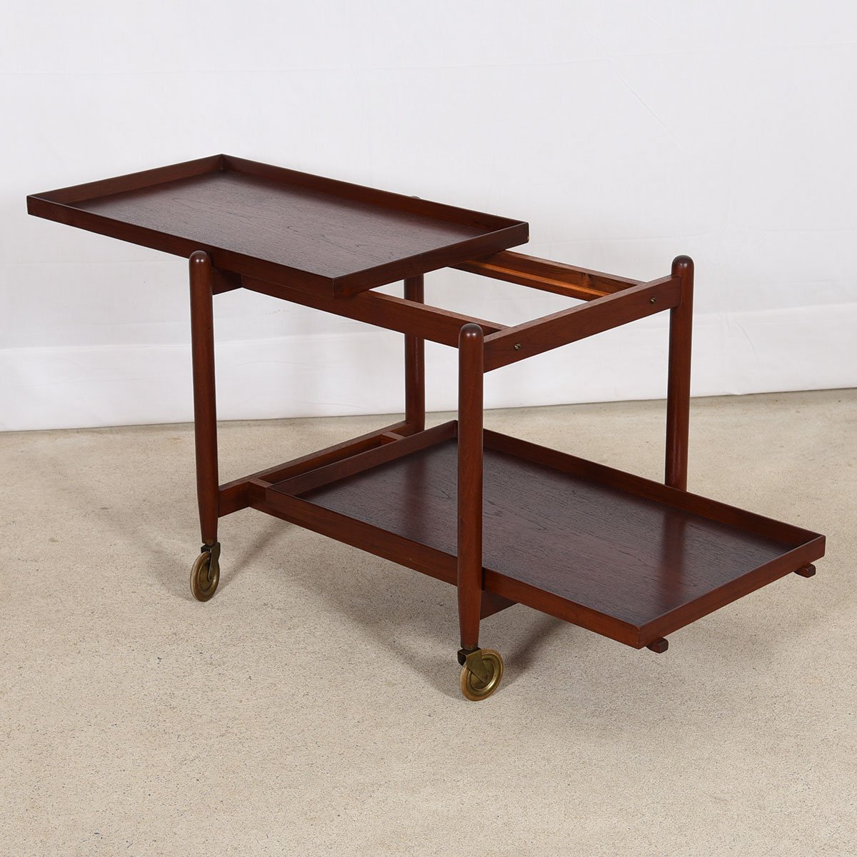 To arrange purchase or for more information about the Early Danish Teak Expanding Bar Cart with Removable Tray please call us at 202.882.1648 or email us at info@modernmobler.com