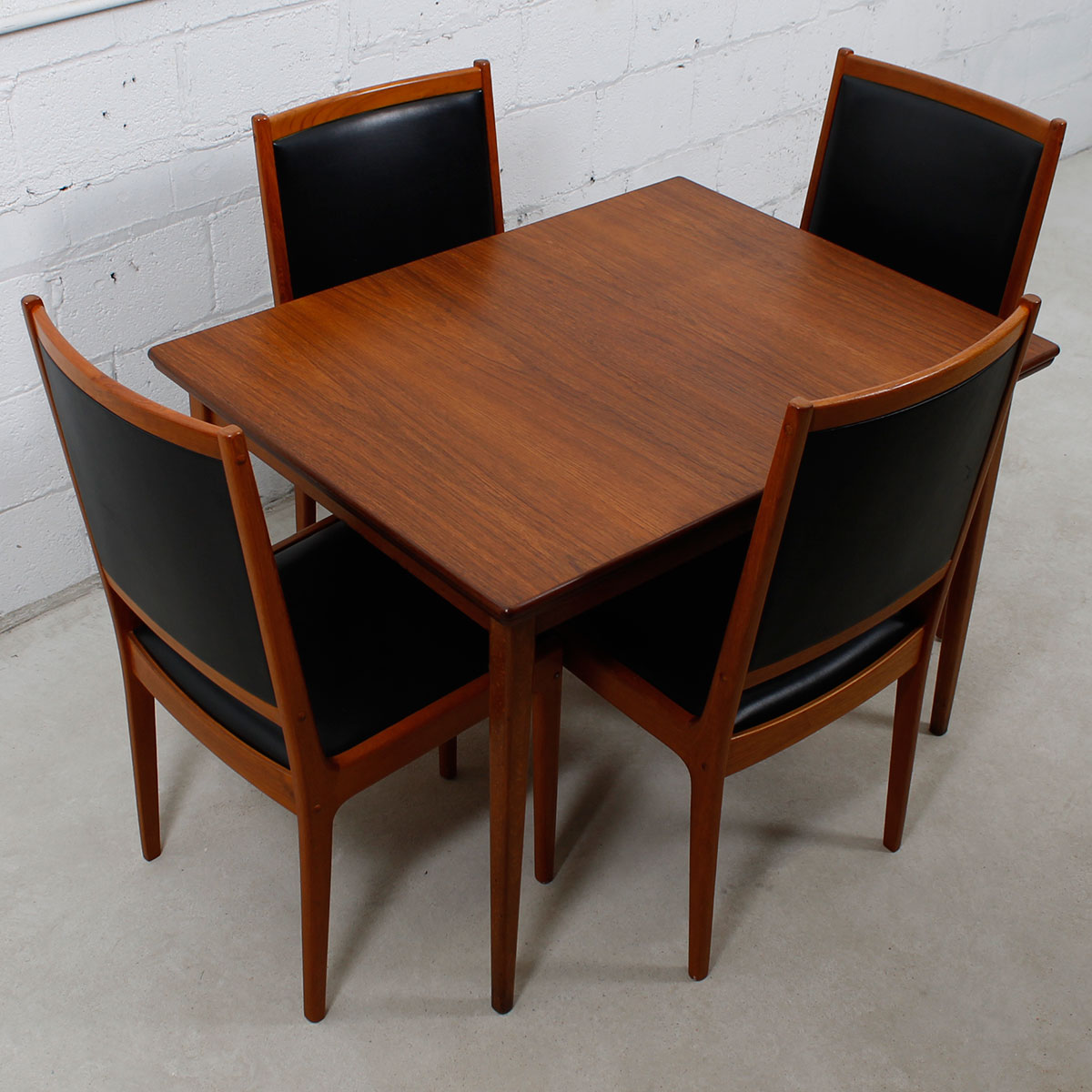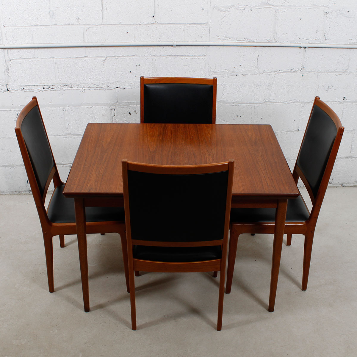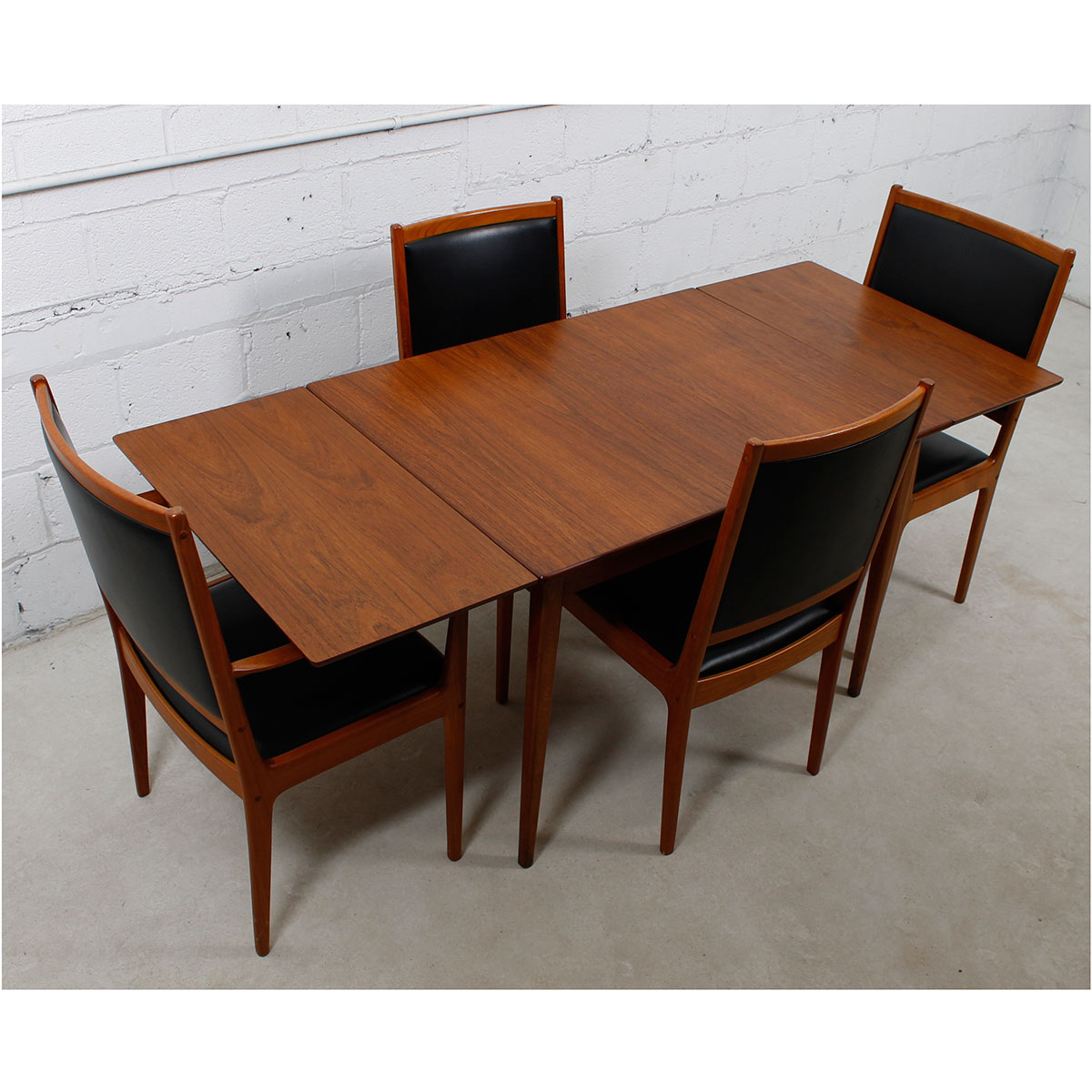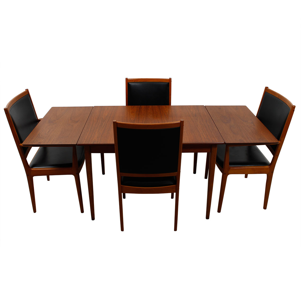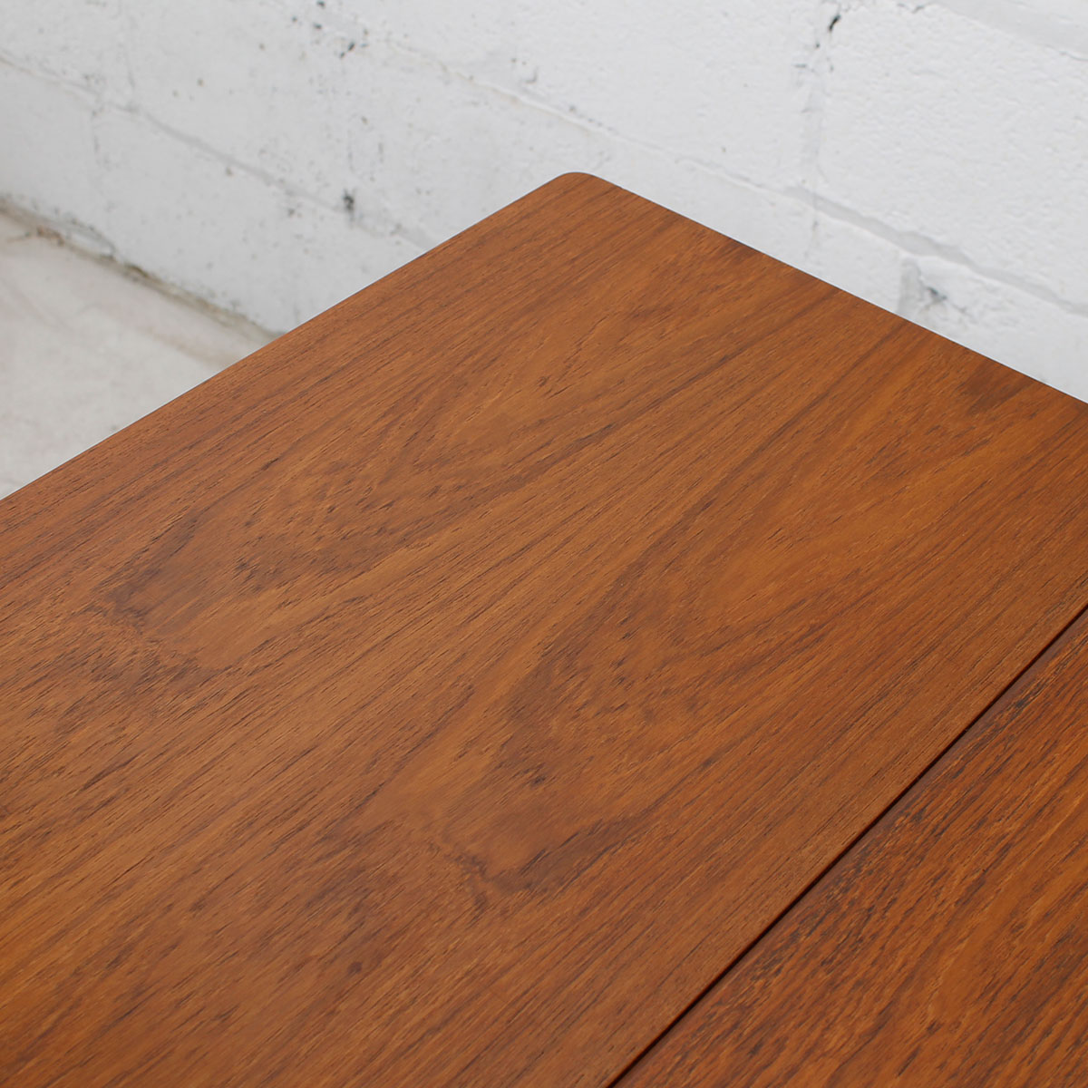 For your urban pied à terre or breakfast nook, here is a wonderful table in one of the smallest sizes we get occasionally, making it extremely desirable. Only 31″ across and 41.25″ wide it expands twice through leaves that pull out at either end. Its maximum length is 72.72, seating six people. The teak has aged nicely to a beautiful patina.
