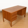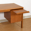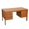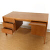 Great mid sized desk that offers ample storage with not only three smaller drawers for traditional storage on the left, but also a file drawer, and a pull-out writing shelf on the right. Attributed to Edmund Spence.