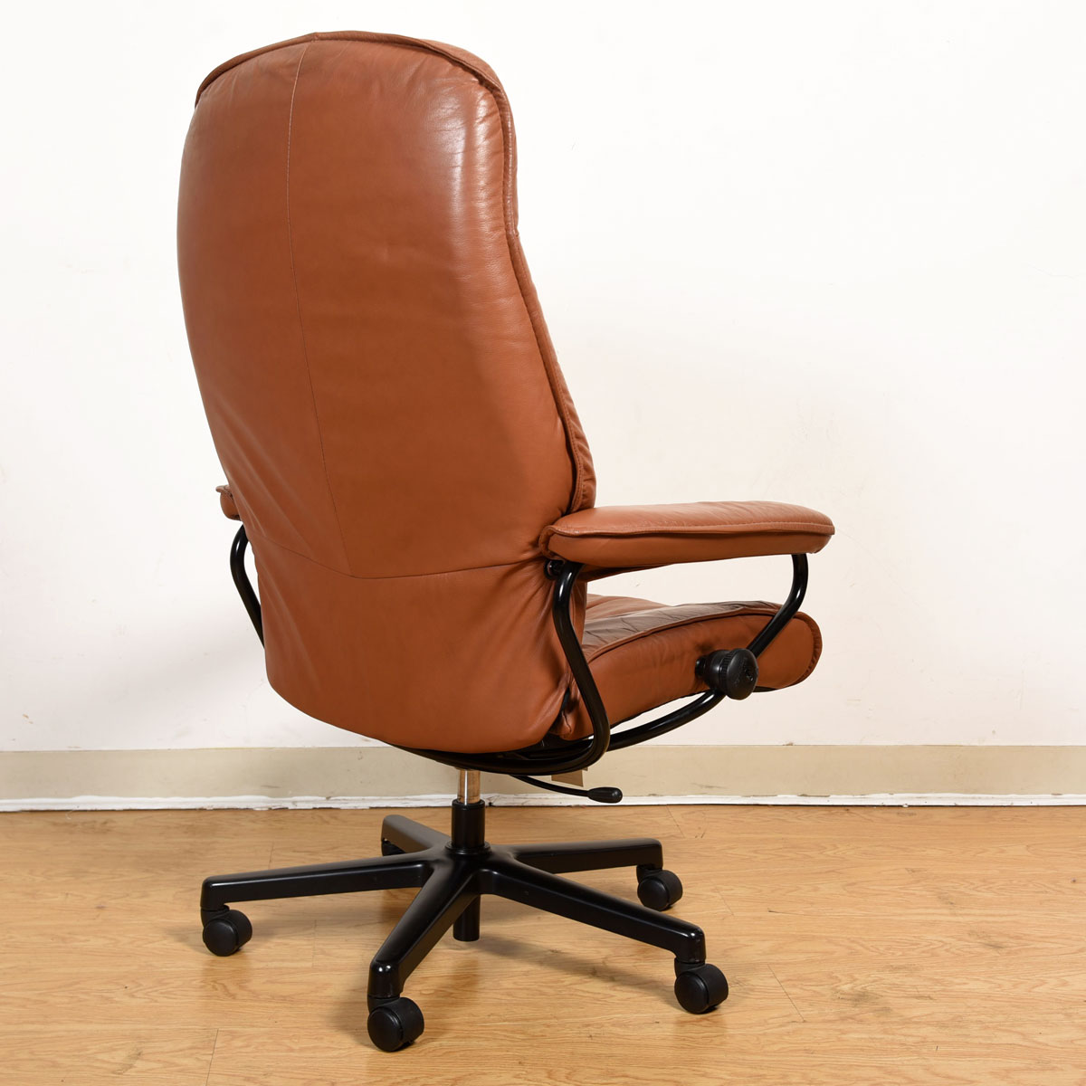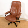 Ekornes Brown Leather Executive Desk Swivel Recliner on Wheels