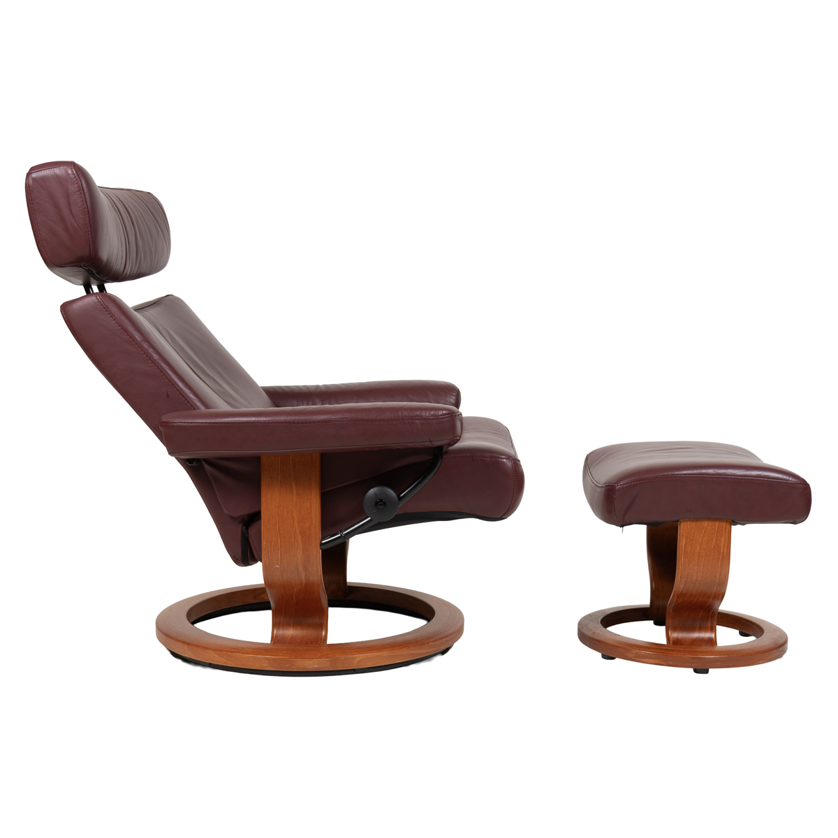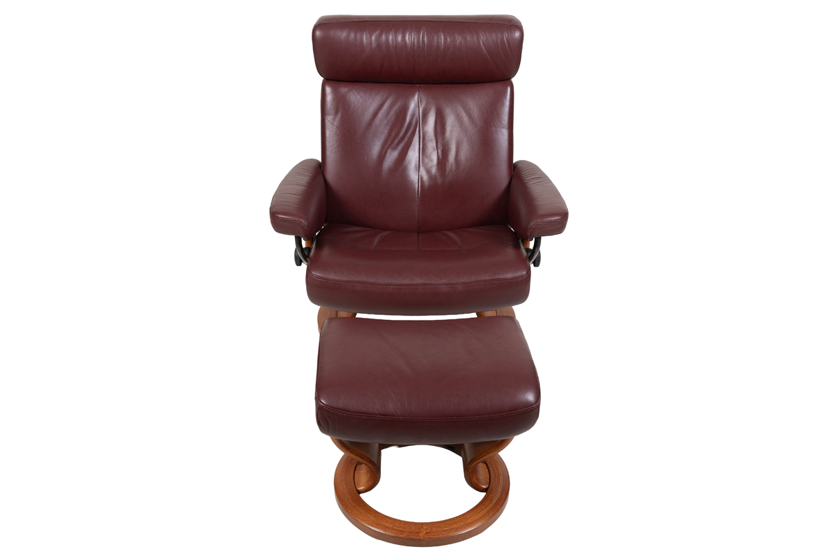 - An Ekornes Norwegian Stressless lounge chair that reclines to an almost perfectly horizontal position for maximum relaxation