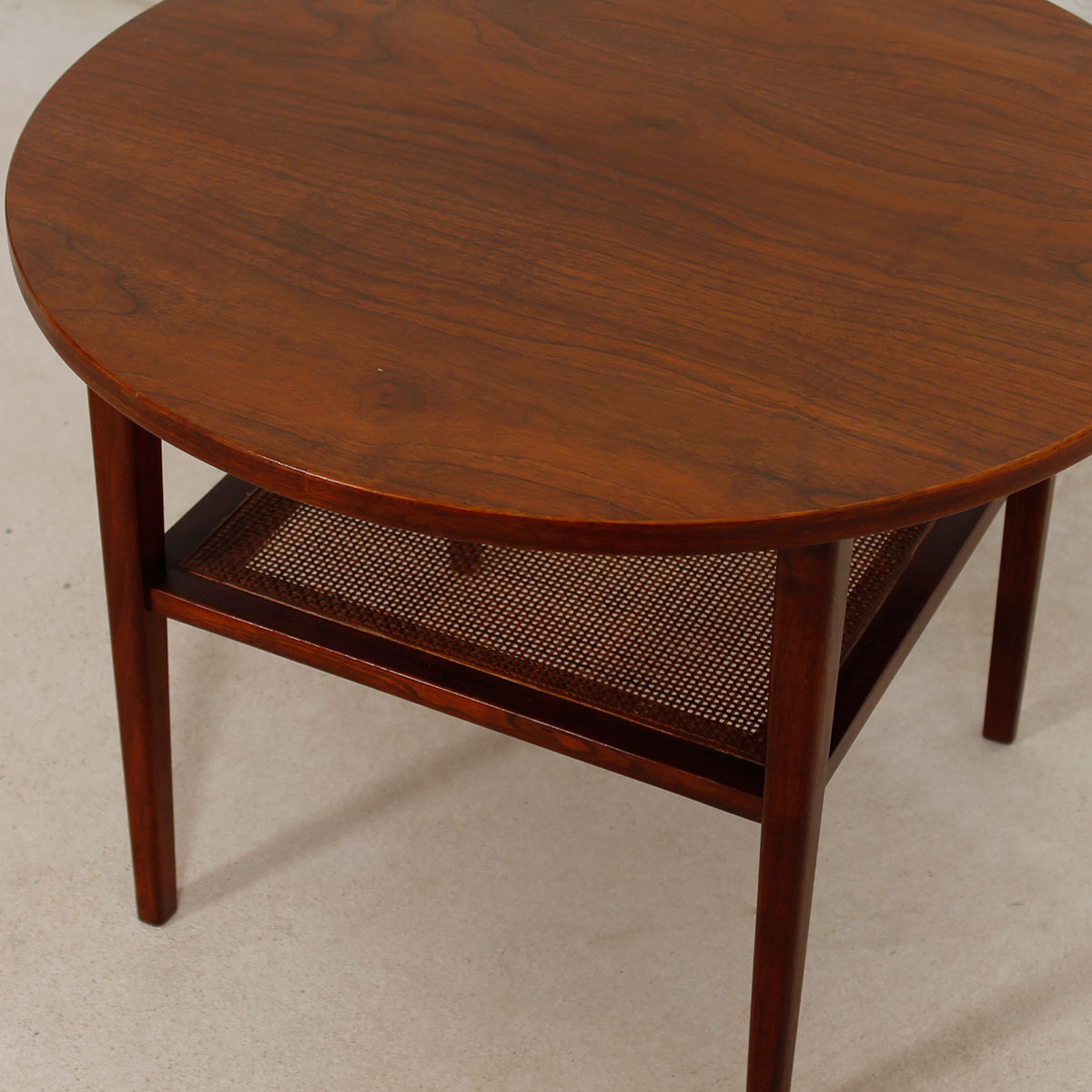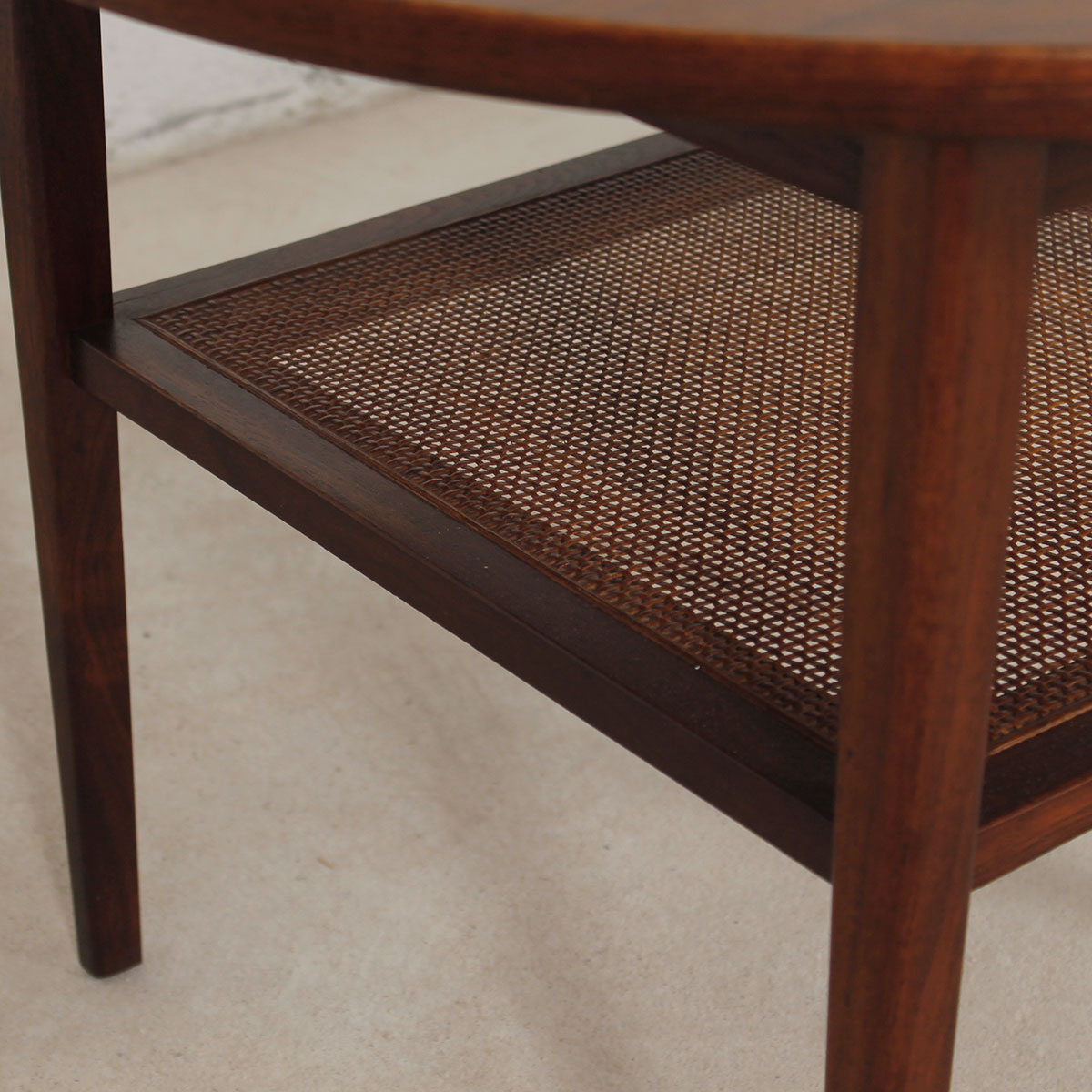 To arrange purchase or for more information about the Elegant MCM Walnut Occasional / Side Table w/ Rattan Shelf please call us at 202.882.1648 or email us at info@modernmobler.com