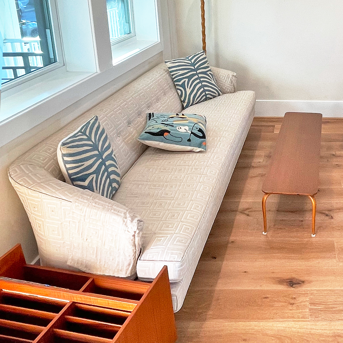 - The seat is not broken up with cushions but rather has one long cushion (seats 3-4 comfortably)