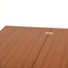 The top on this old bar cart slides and folds open to double the surface of the table top. The reversible bottom shelf – inset into a frame, lifts out as a tray making it easy to pass drinks around to your guests for ultra functionality. Sturdy construction and made of teak, with beautifully accenting brass hardware. The teak has aged to deep perfection and the wheels roll smoothly. Use it as a bar cart or occasional table for a serving area during dinner parties for breakfast in bed. A marriage of beauty and function.