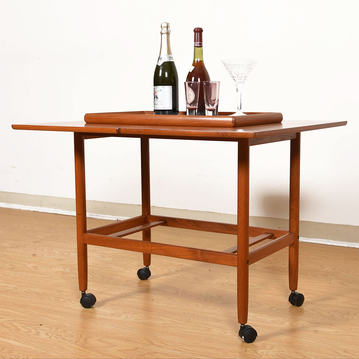 Expanding Danish Teak Cocktail Cart with Reversible Serving Tray