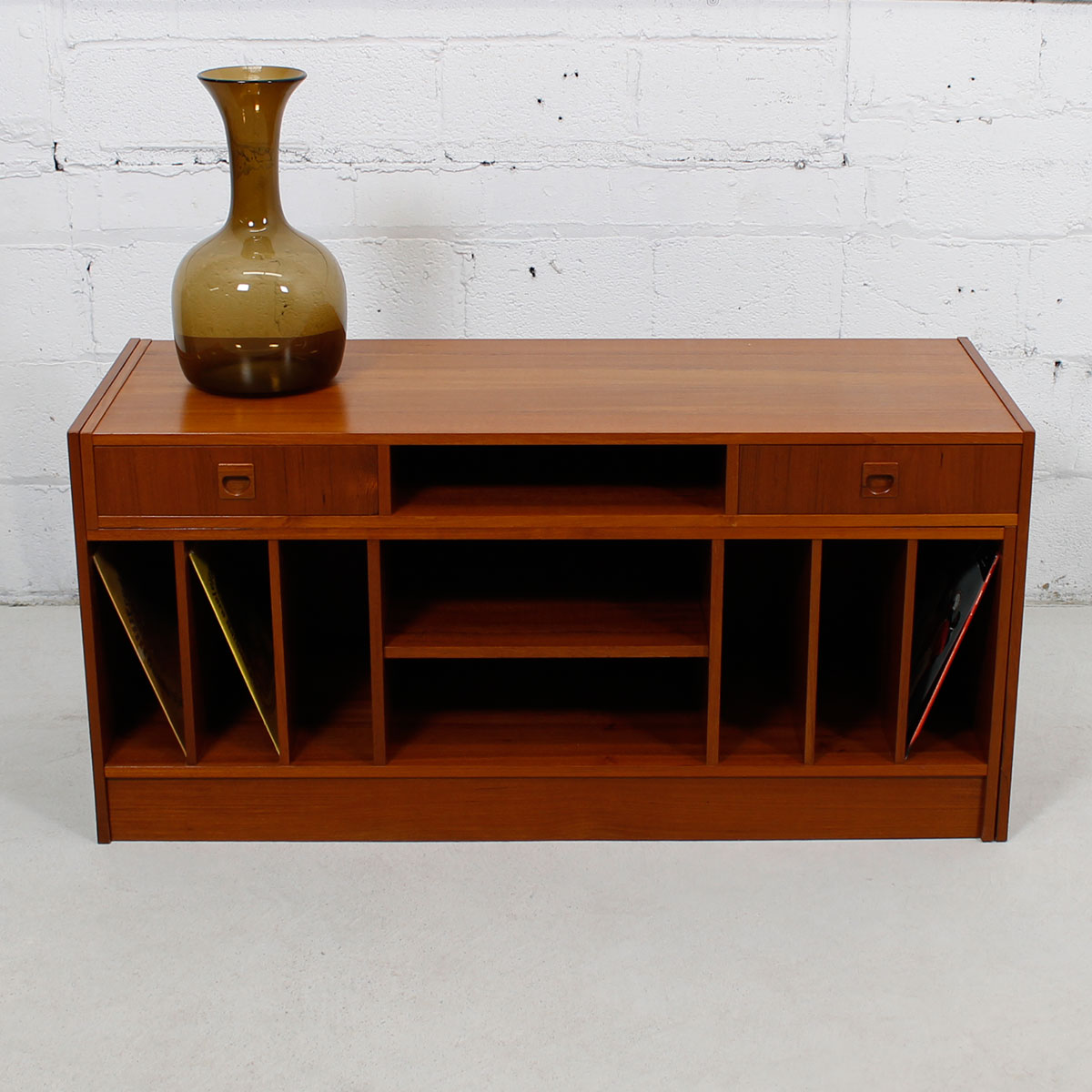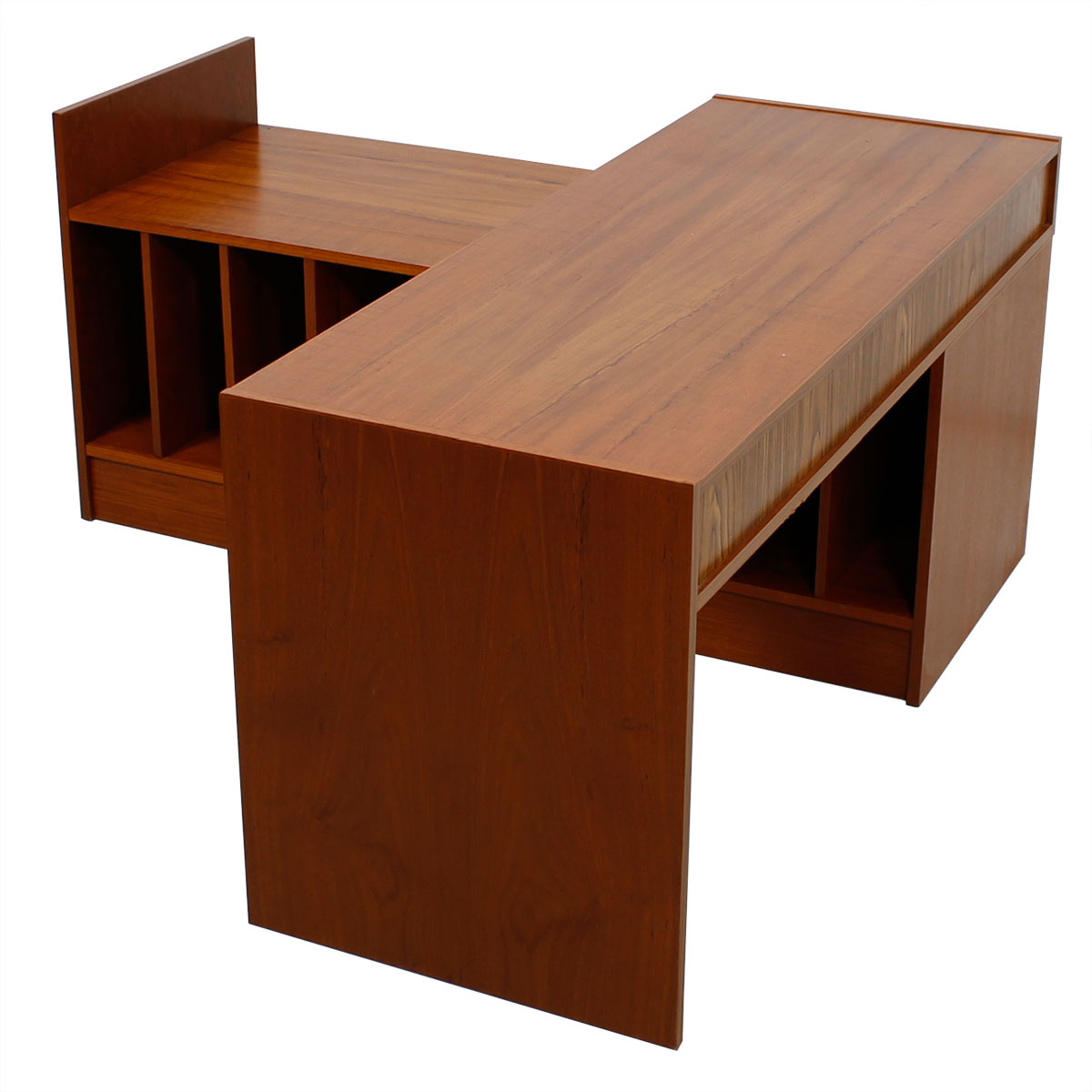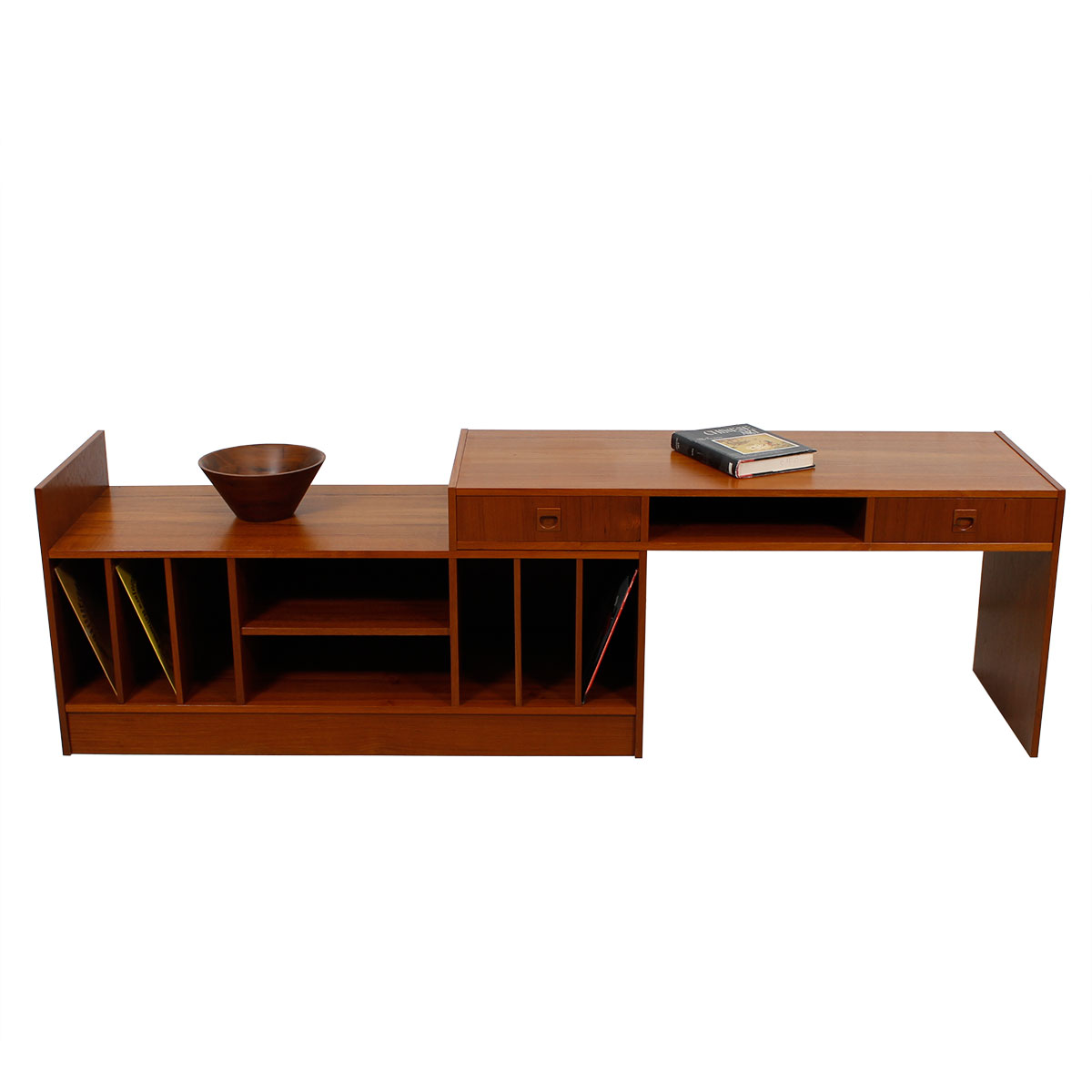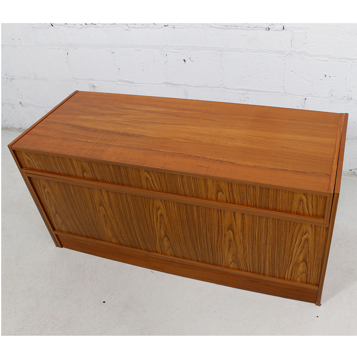 Functional Danish Modern Teak Cabinet Featuring a Shelf that Turns the Piece Into a Work Space. Leave It Up All the Time or Use Only When You Need It. Perfect piece to house media components. Great for Small Spaces.