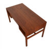 Wow — What a Sexy Writing Desk — Compact & Stately! Signature Inset Pulls from Arne Wahl Iversen for Vinde Mobelfabrik, Denmark. Two Exposed ‘bookcase’ Storage Cubbies on the Other Side w/ a Raised Bottom so that it is Comfortable for Someone to Sit on the Other Side, but Yet More Compact than your Typical Partner’s Desk.