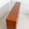 We are proud to offer this rare Danish teak highboard with its minimalist design and maximalist width! Coming in at 90.5″ wide, it offers tremendous storage capacity, while at the same time its depth is especially appealing — measuring only 16″ Deep!