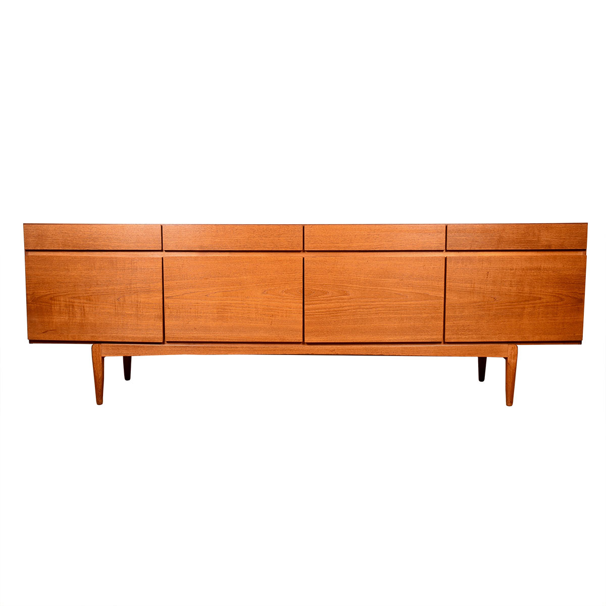 - Streamlined Ib Kofod-Larsen classic Danish teak sideboard w/ finished back