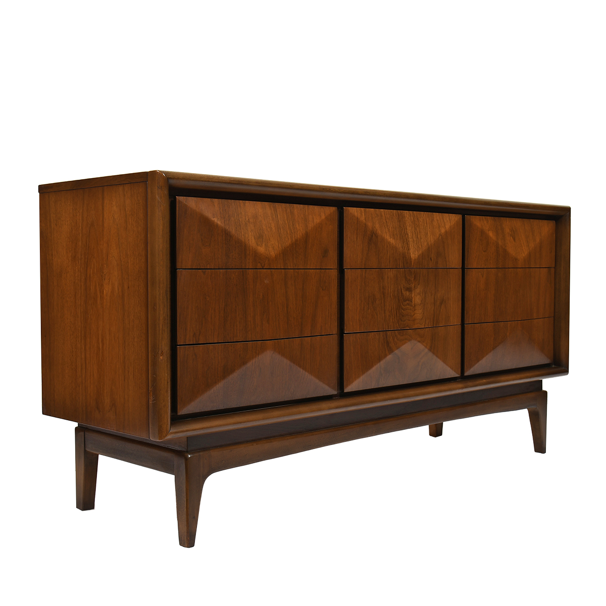 Faceted Front Mid-Century 9-Drawer Diamond Dresser | Sideboard.