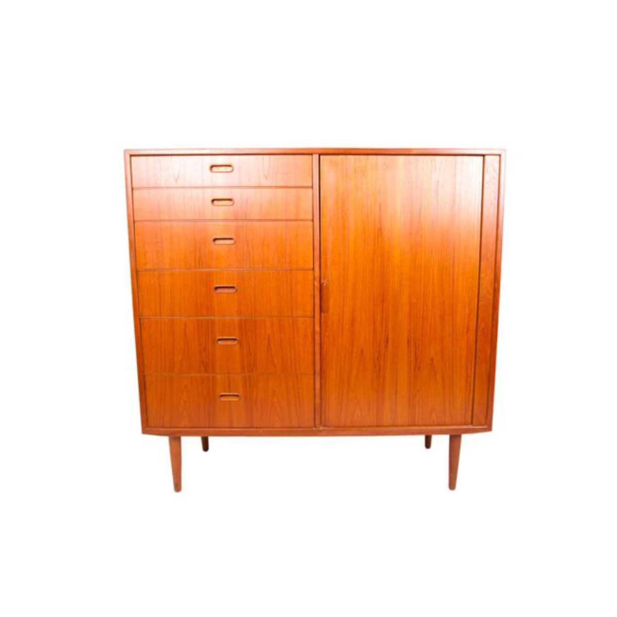 Falster Danish Modern Teak Tall Dresser / Chest with Tambour Door