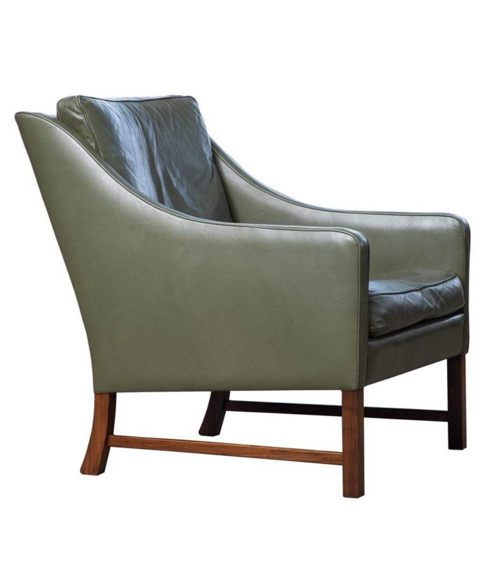 Fredrik Kayser Olive Green Leather Club Chair w Rosewood Leg Base