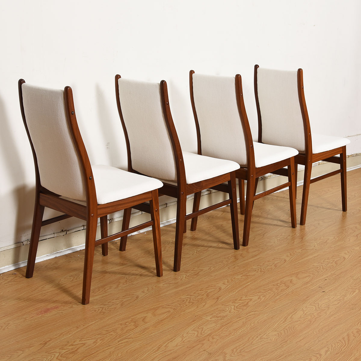 Freshly Upholstered Set of 4 Danish Teak Curved-Back Dining Chairs