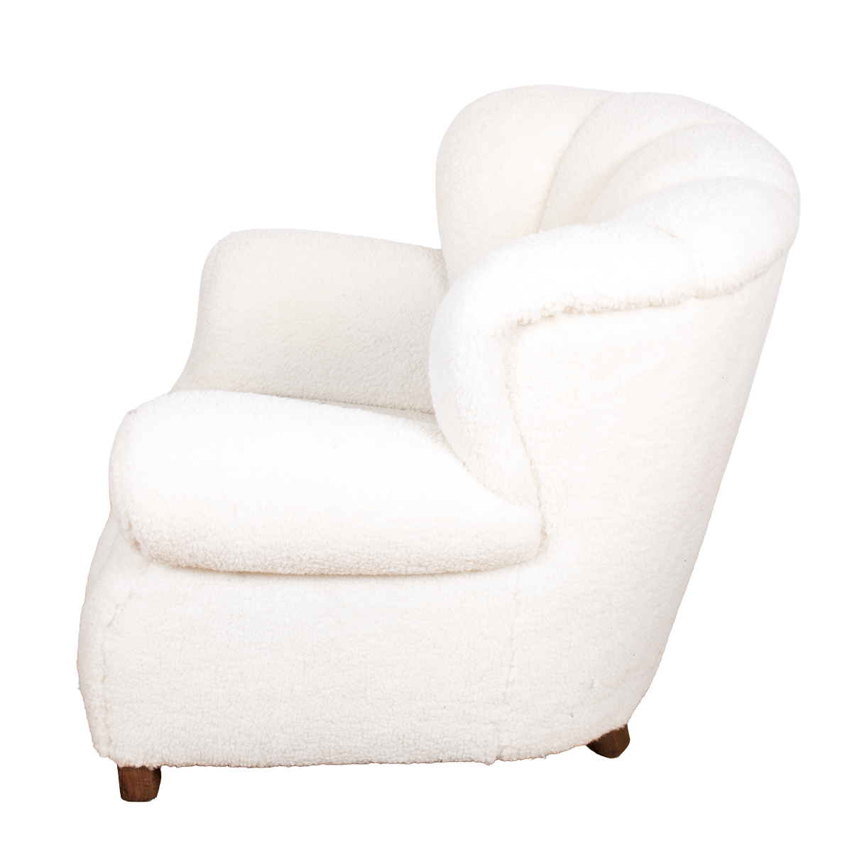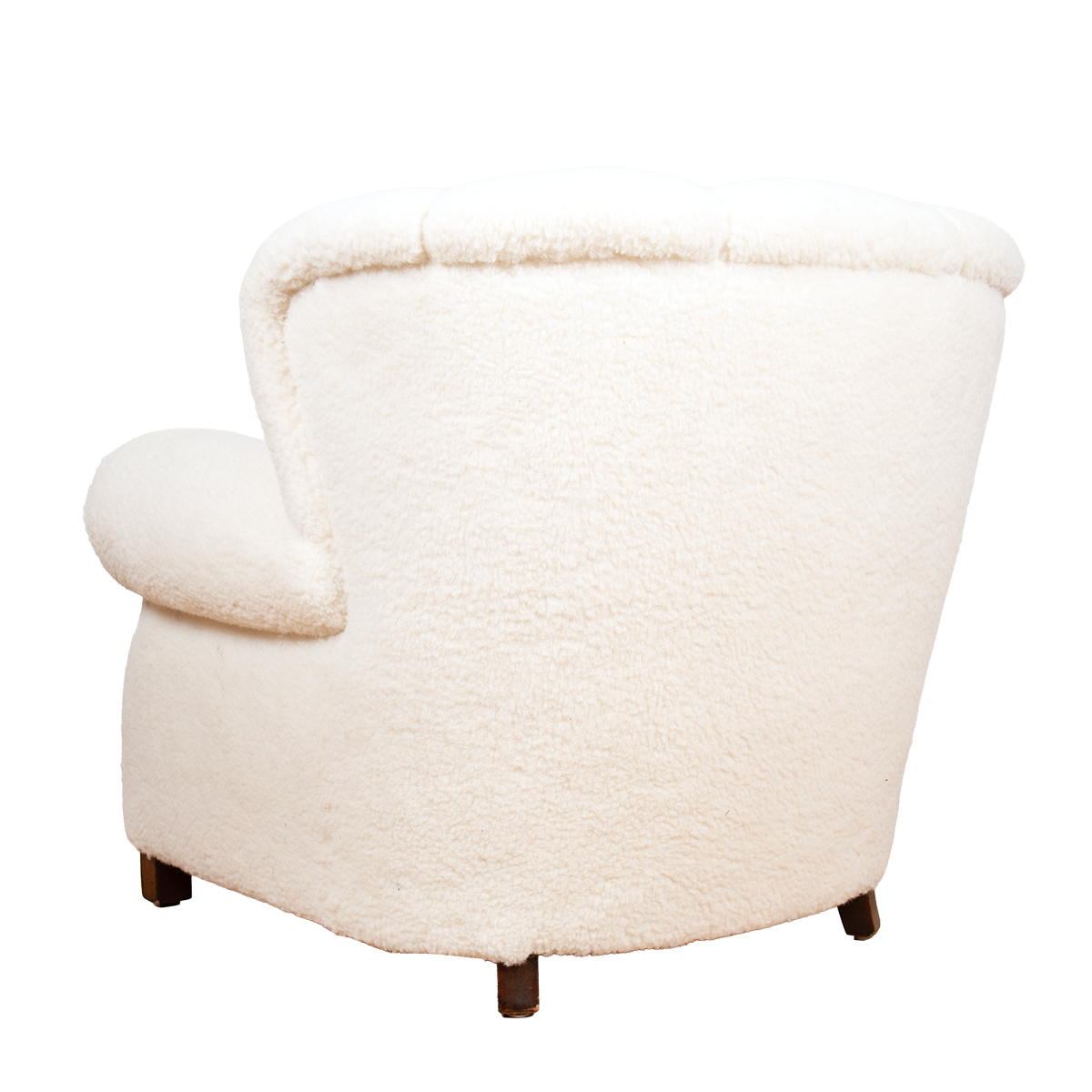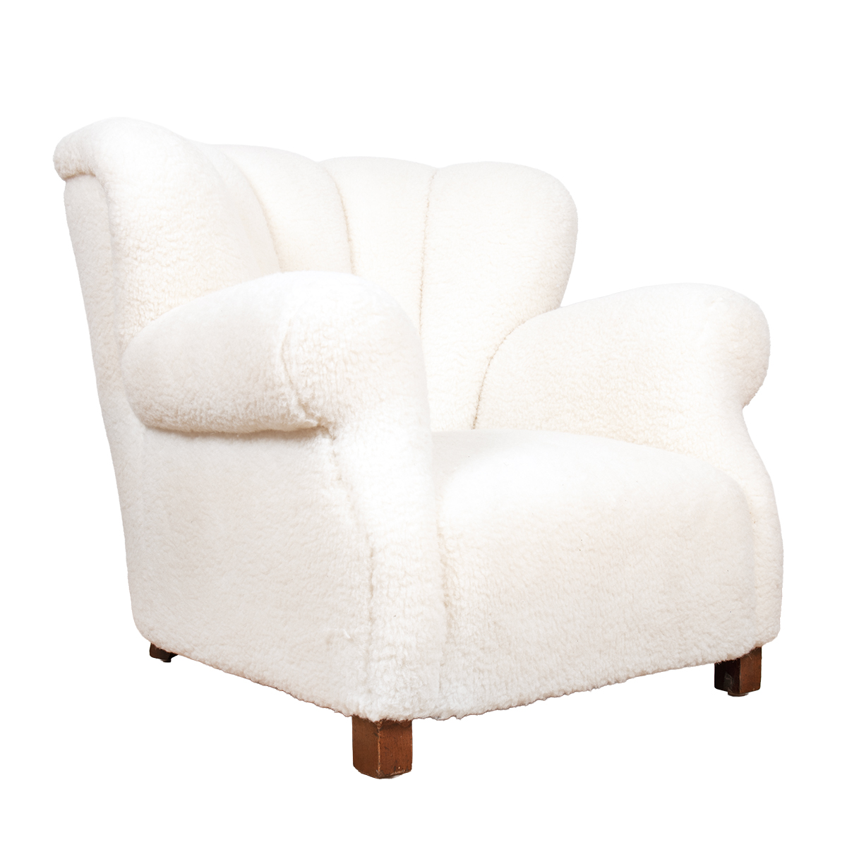 Fritz Hansen Model 1518 Large Size Club Chair in 100% Lambswool Off-White Fleece