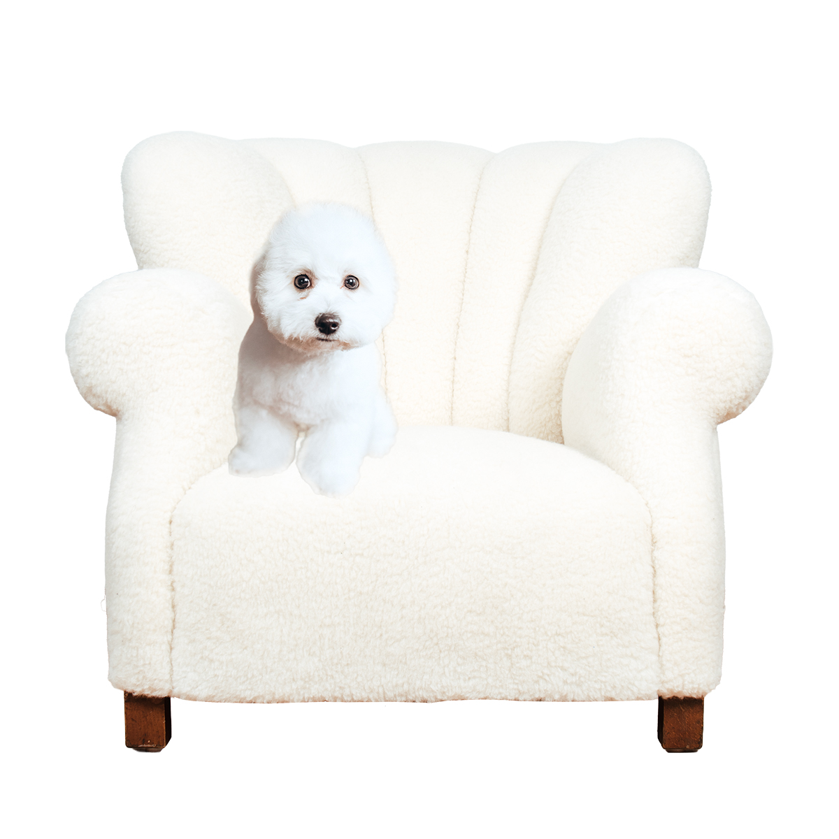 - Newly Upholstered + Refurbished in 100% Lambswool Off-White Fleece