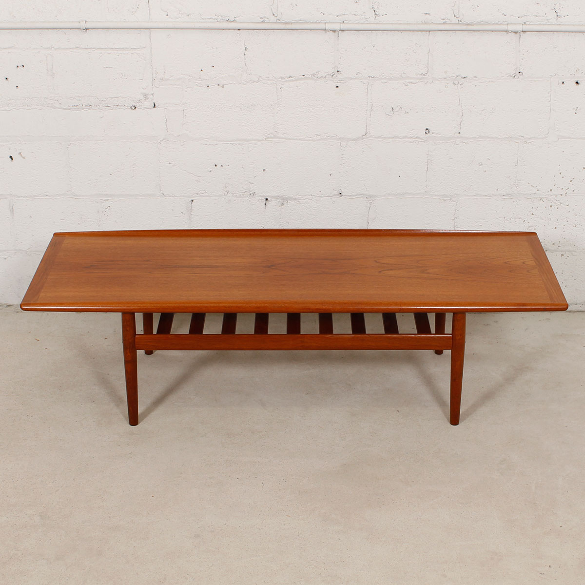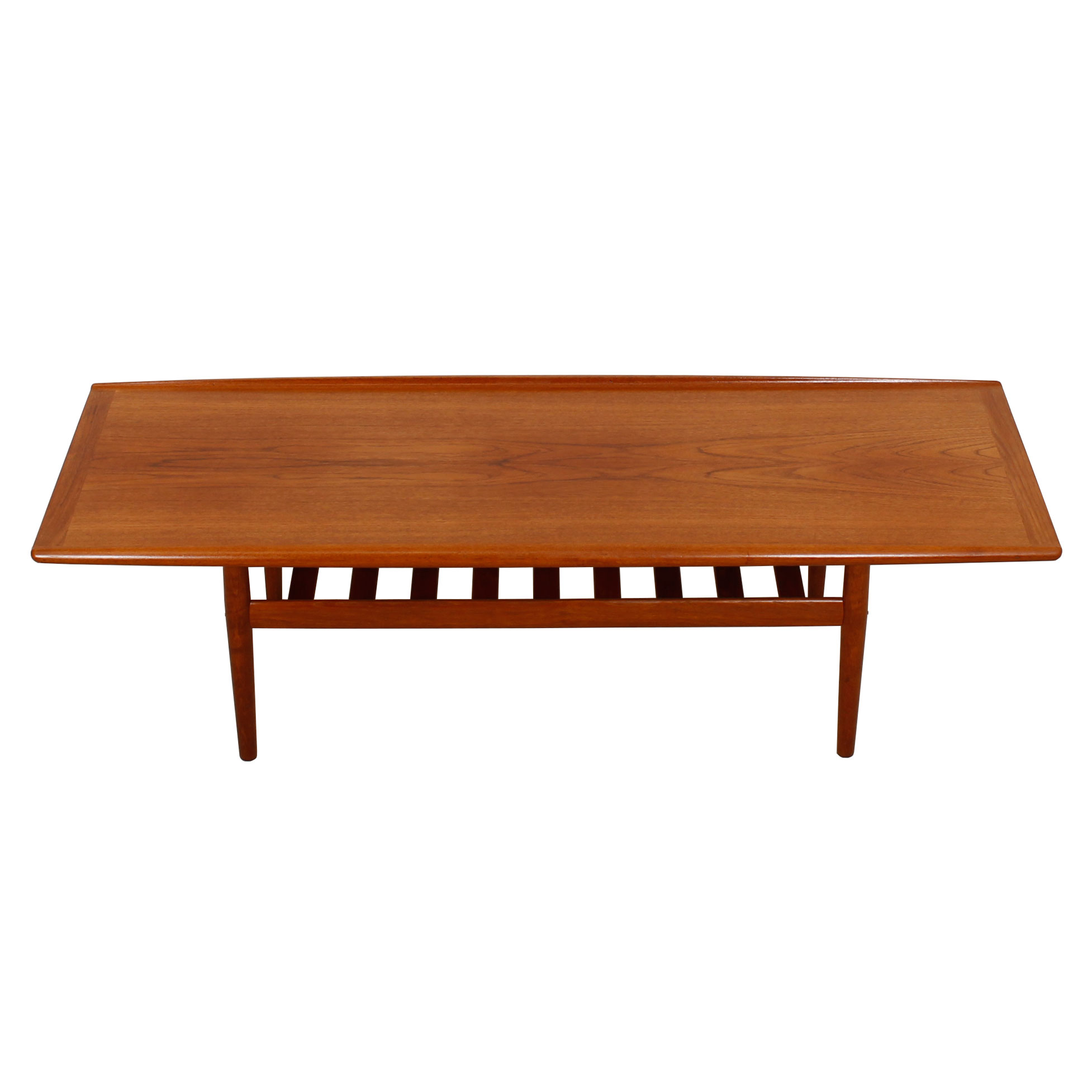 Grete Jalk Danish Teak Surfboard Coffee Table w/ Shelf