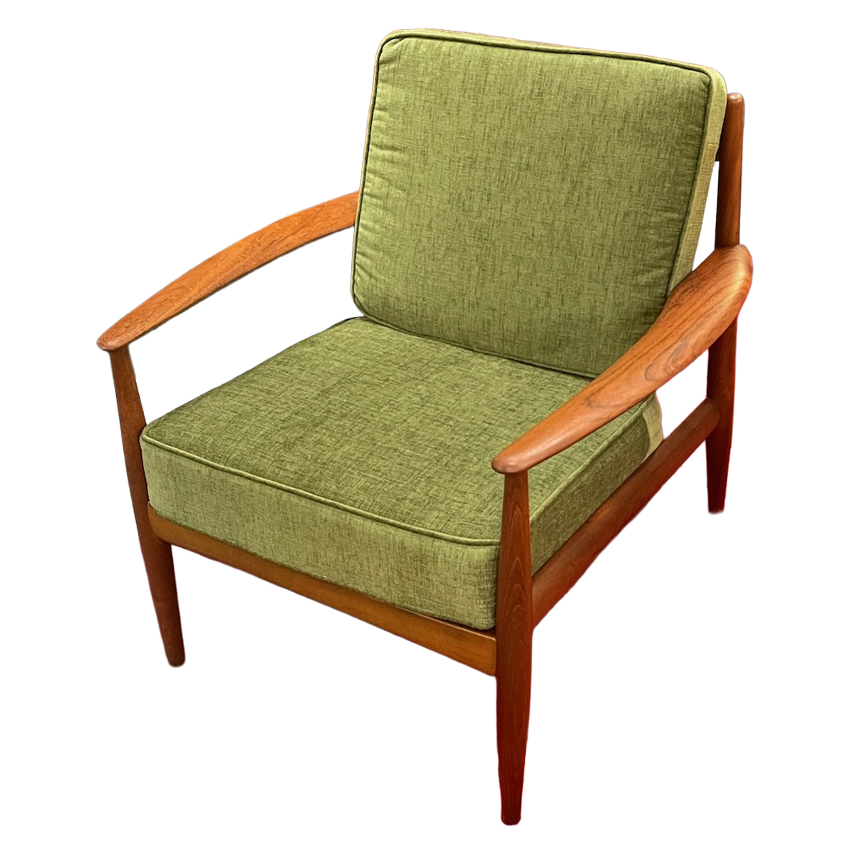 Grete Jalk Easy Chair w. New Support Straps + New Cushions in Spinach Green