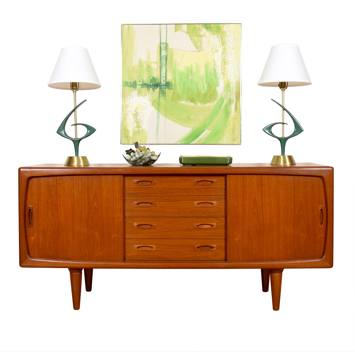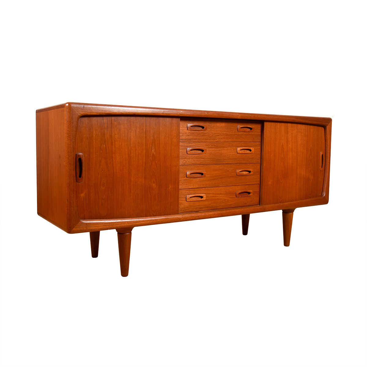 H.P. Hansen 67″ Danish Teak Sideboard w. Sliding Doors