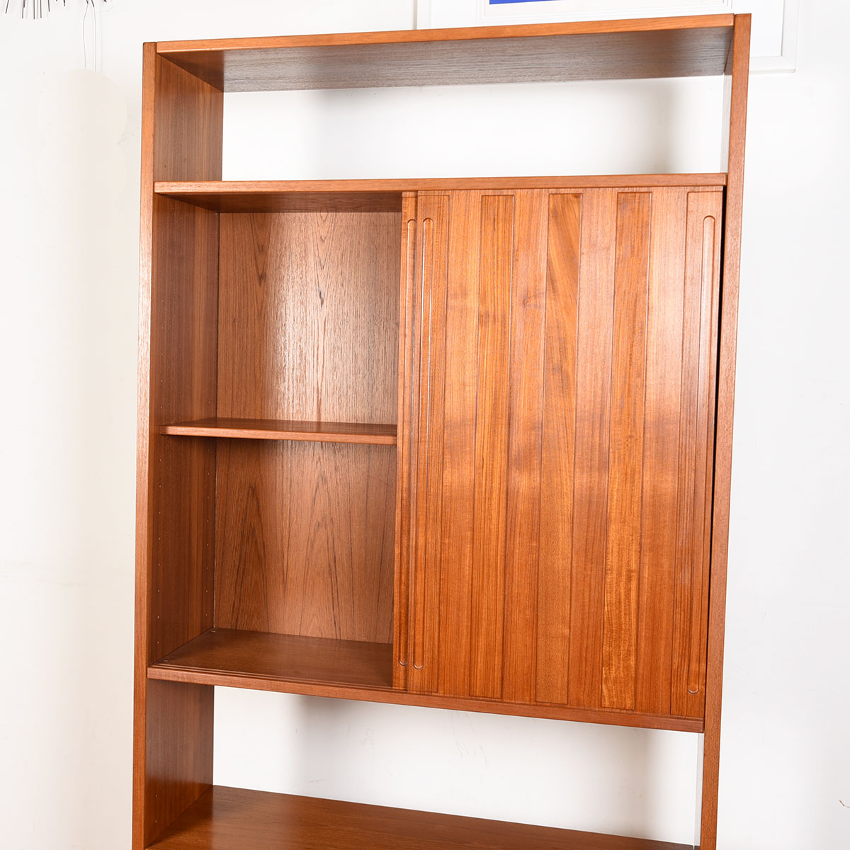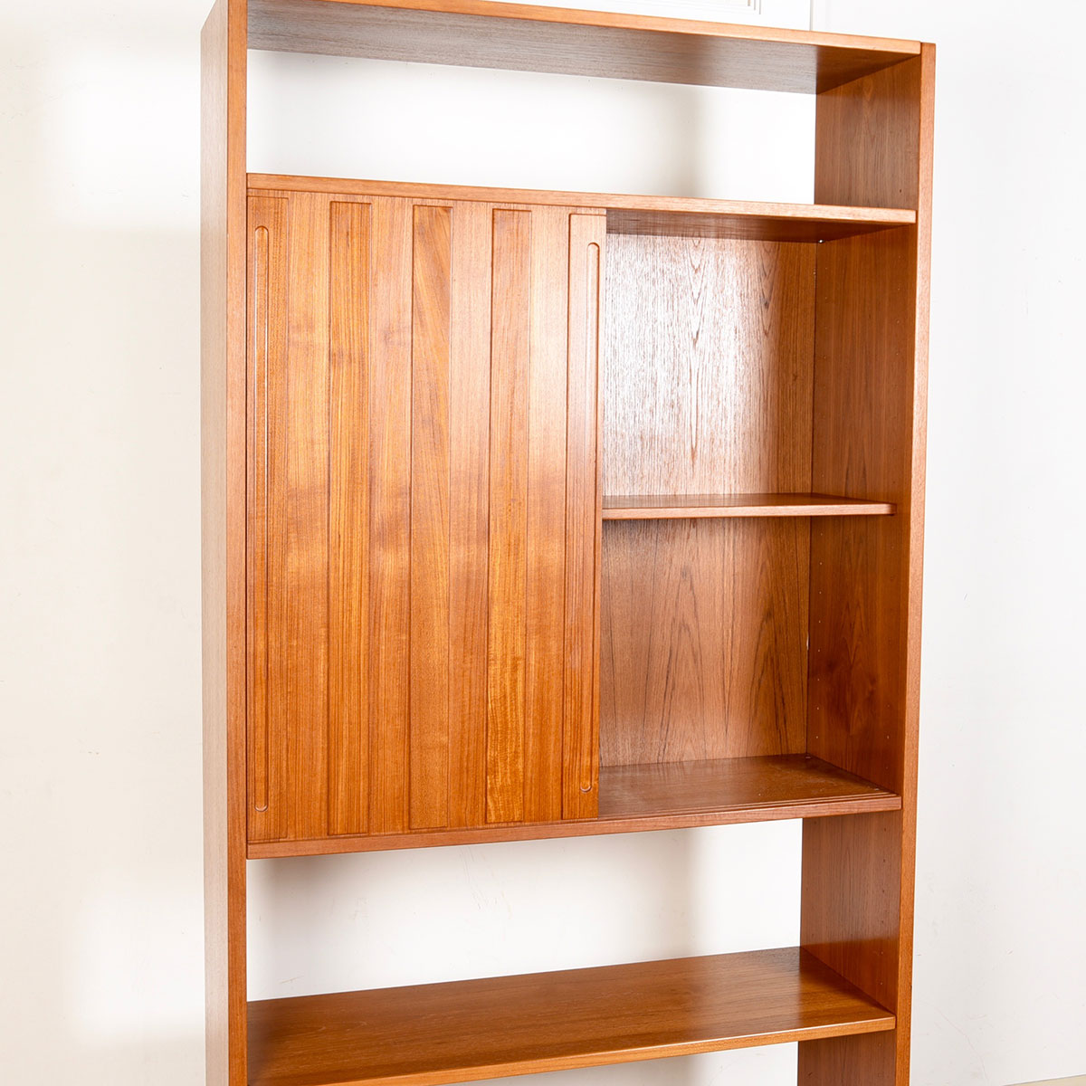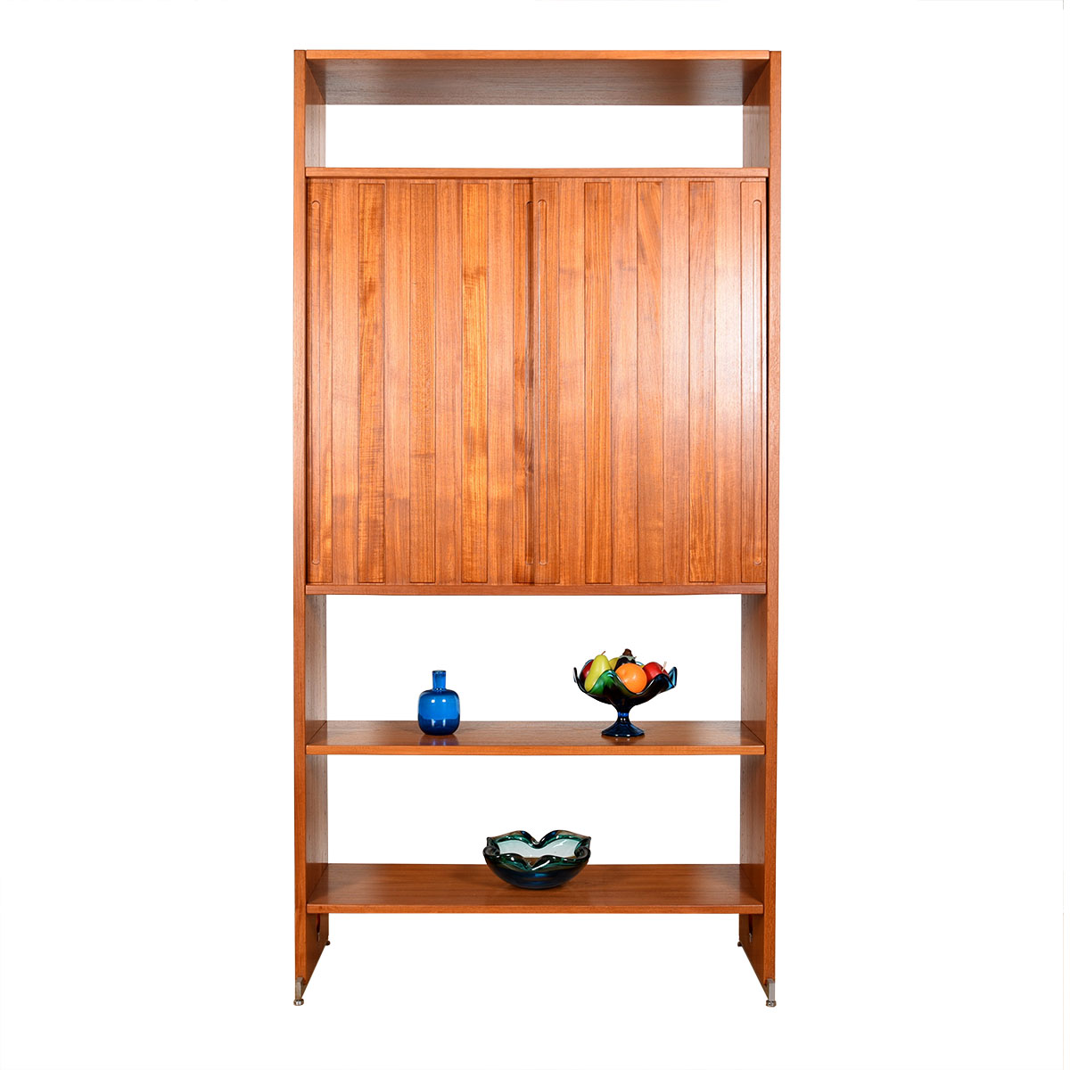 Home » Shop » Storage » Bookcases / Wall Units » Hans Wegner Adj. Single Column Teak Wall Unit | Room Divider w. Rare Tall Cabinet Sliding Doors