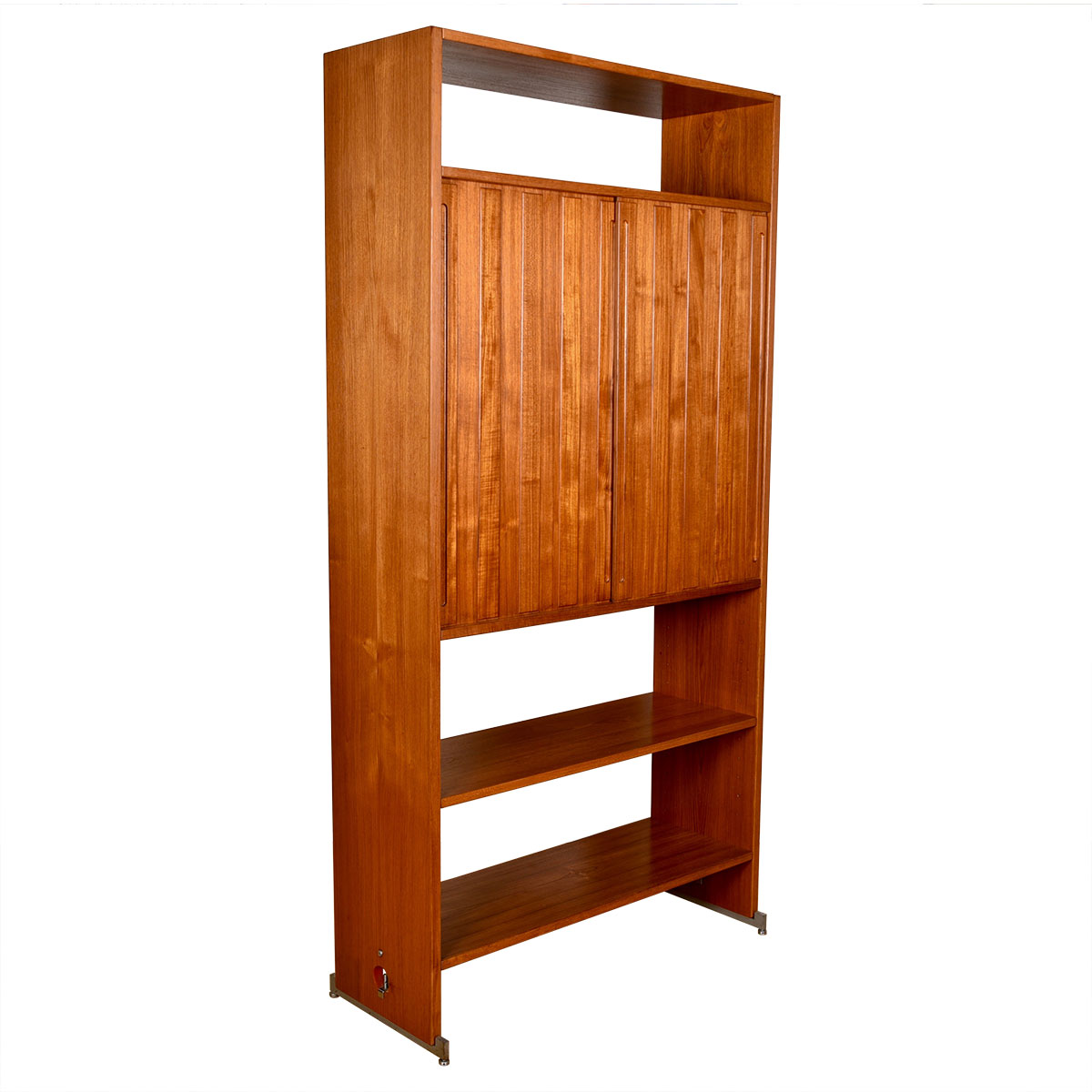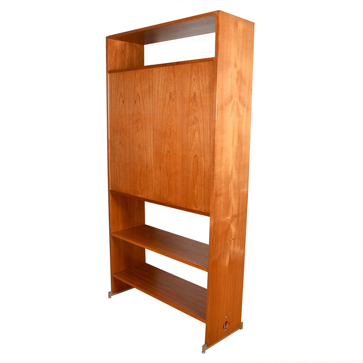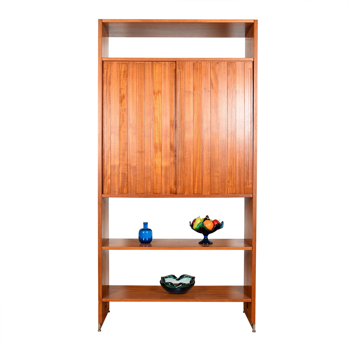 Home » Shop » Storage » Bookcases / Wall Units » Hans Wegner Adj. Single Column Teak Wall Unit | Room Divider w. Rare Tall Cabinet Sliding Doors