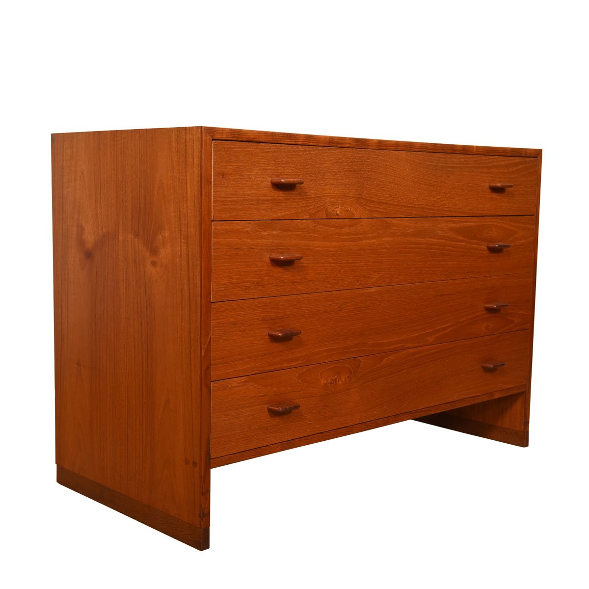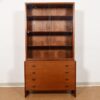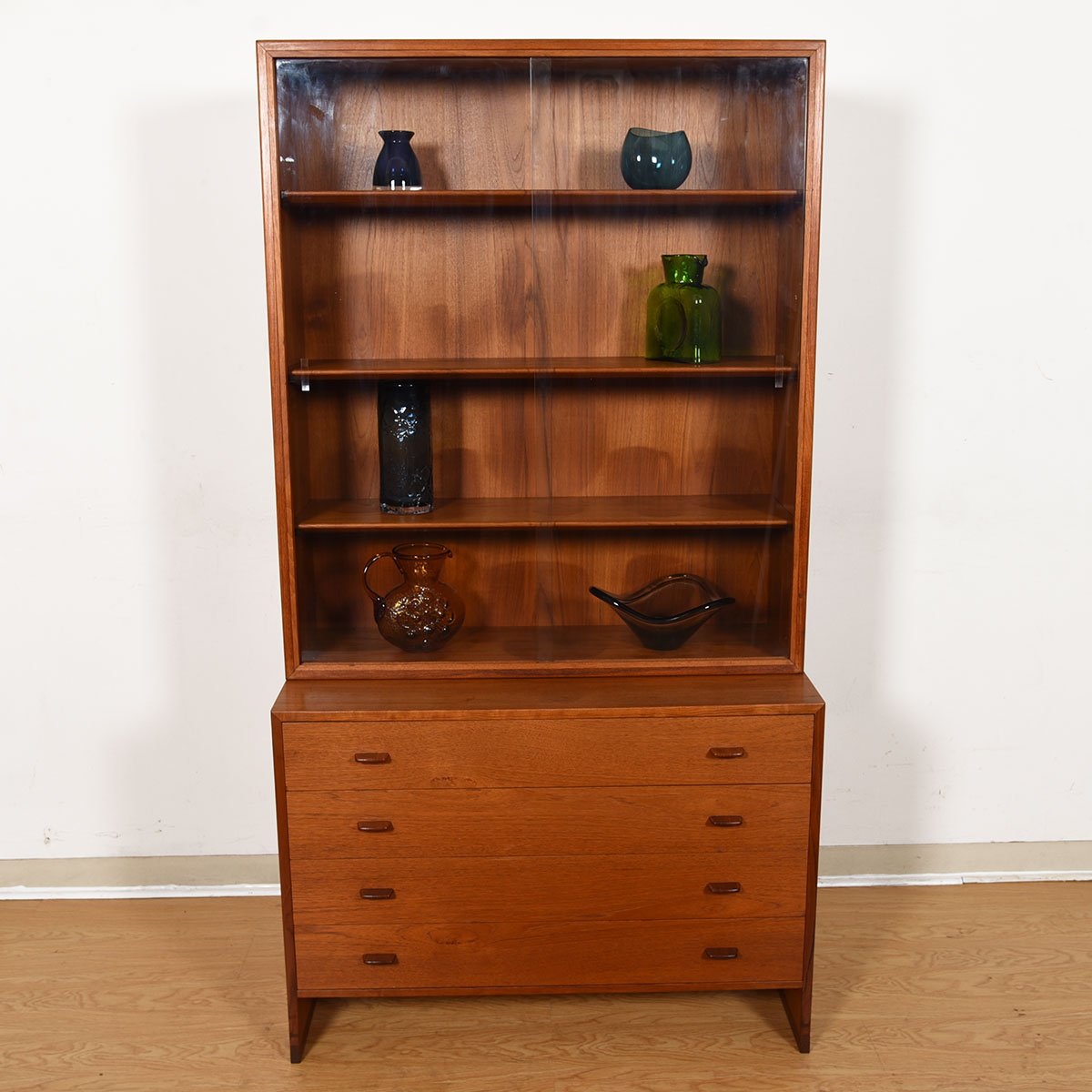 We are pleased to offer this beautiful old Hans Wegner 4 drawer chest of drawers with a glass-fronted display / bookcase top. The drawers have two flat pulls with top indents for the fingers. The teak has aged to a deep dark patina.