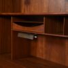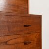 Below, a chest of 4 drawers provides plenty of storage, and makes this appropropriate for use in a bedroom as a dresser/vanity or in an office as a desk with storage. The pulls are flat with an indent on top for the fingers. The teak has aged to a glorious deep patina.