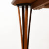 The highlight of this beautiful Danish Modern dining table is its legs. Just look at how three “stems” of wood seem to grow out of the floor organically, together at the bottom and open at the corners under the table surface. The top of table has a bowed shape and rounded edges and corners.